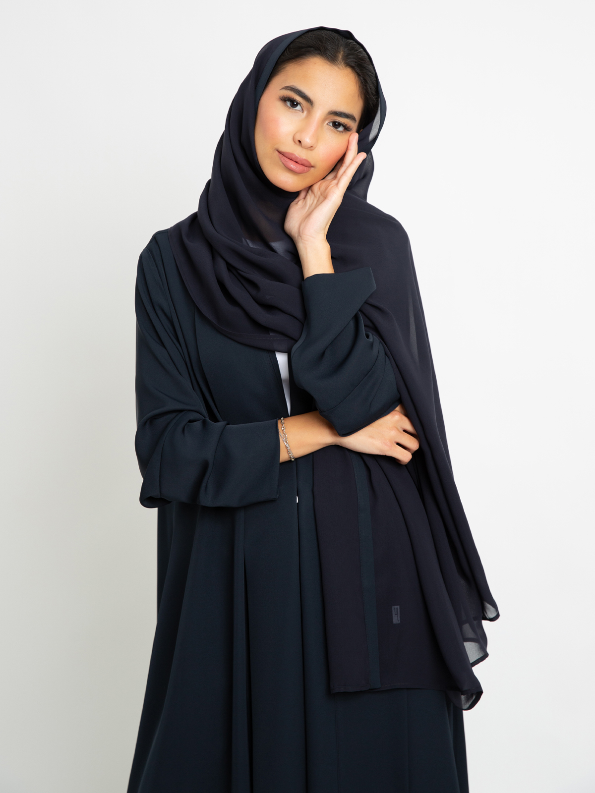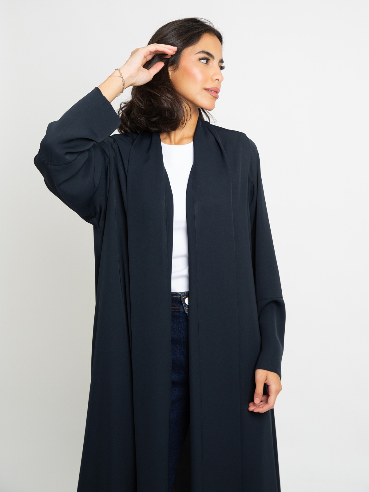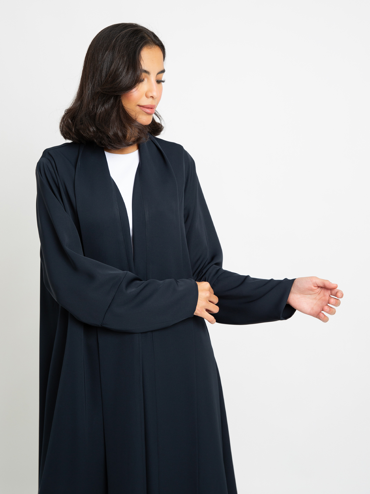 Plain Half Cloche A-Cut Long Open Abaya in Crepe Fabric