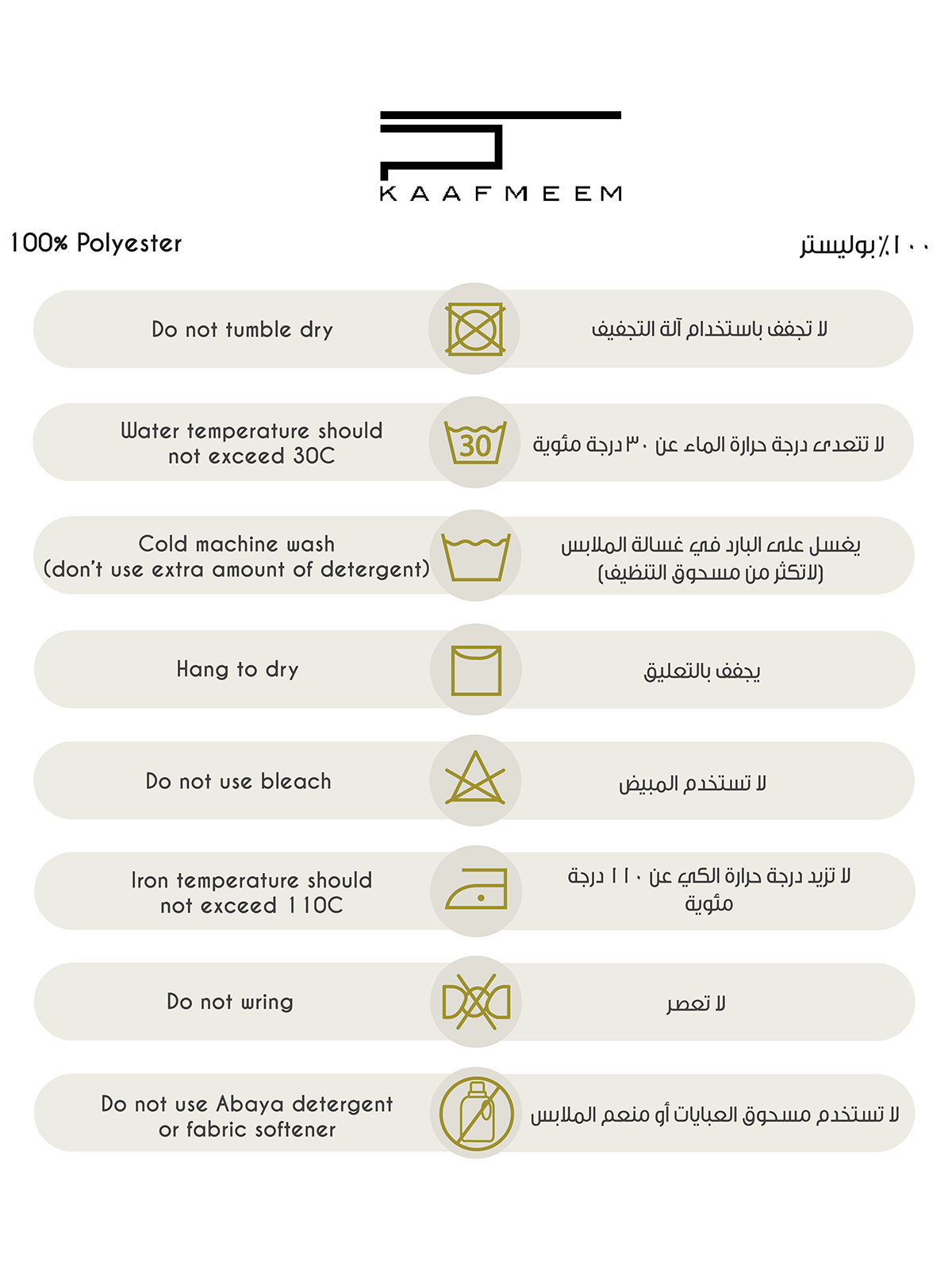 | Fabric | 100% Polyester |