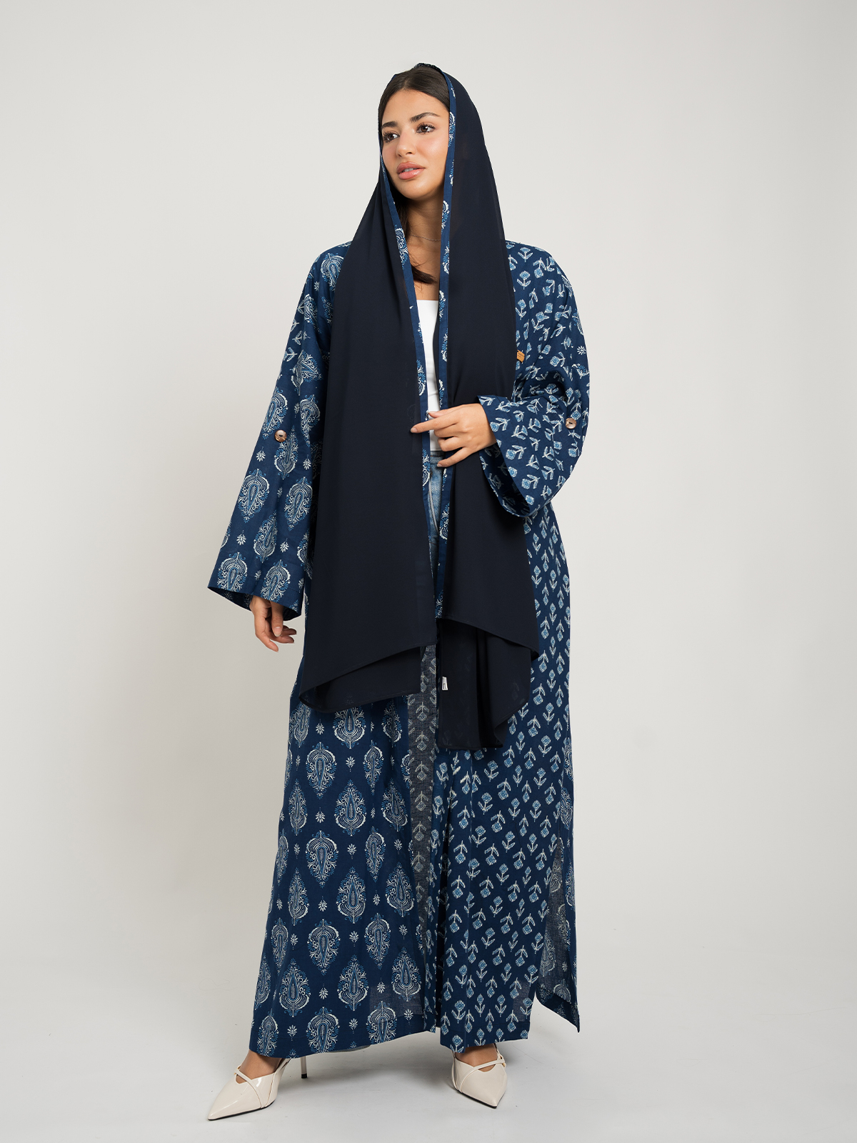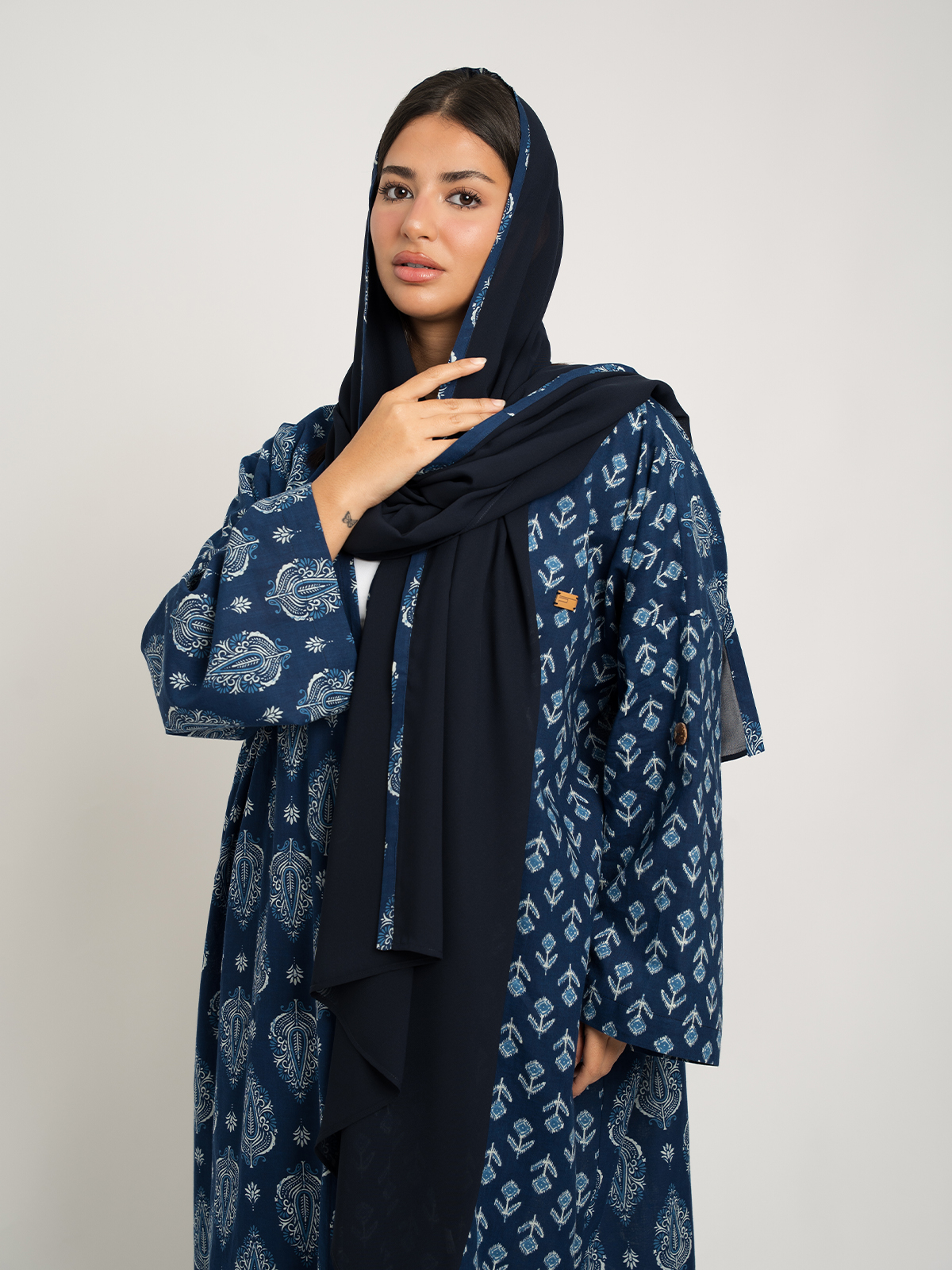 A breezy, bohemian abaya made of 100% natural cotton fabric, designed with comfort and attention to detail in mind.