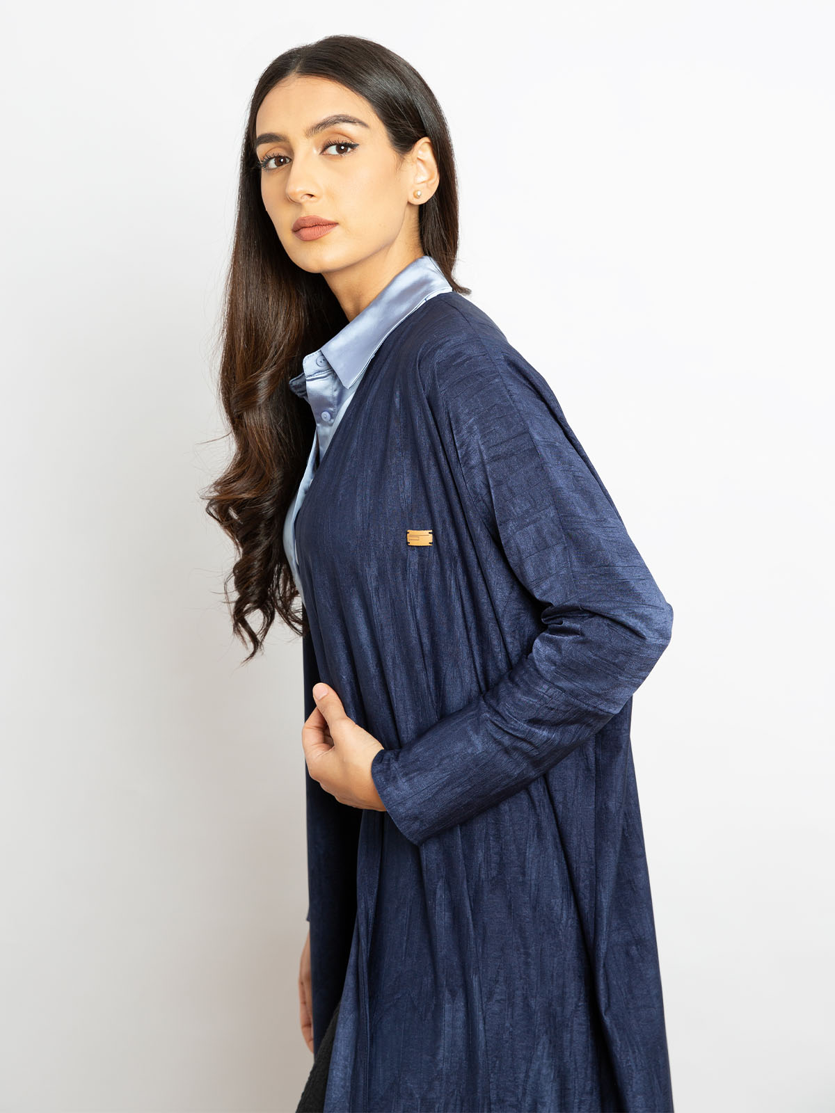Navy - Stretchy Half Bisht Long Open Abaya