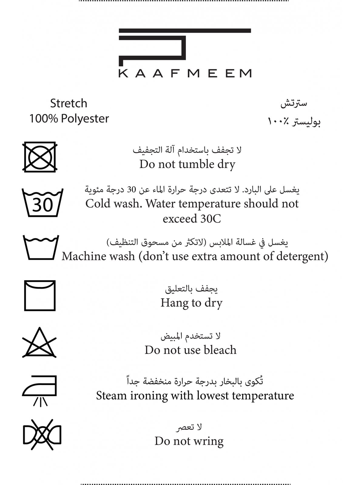 | Fabric | 97% Polyester, 3% Spandex |