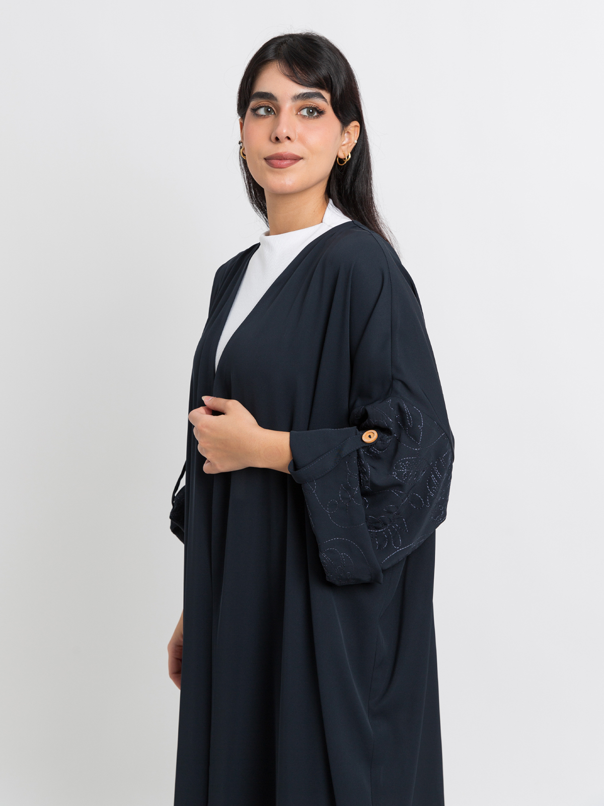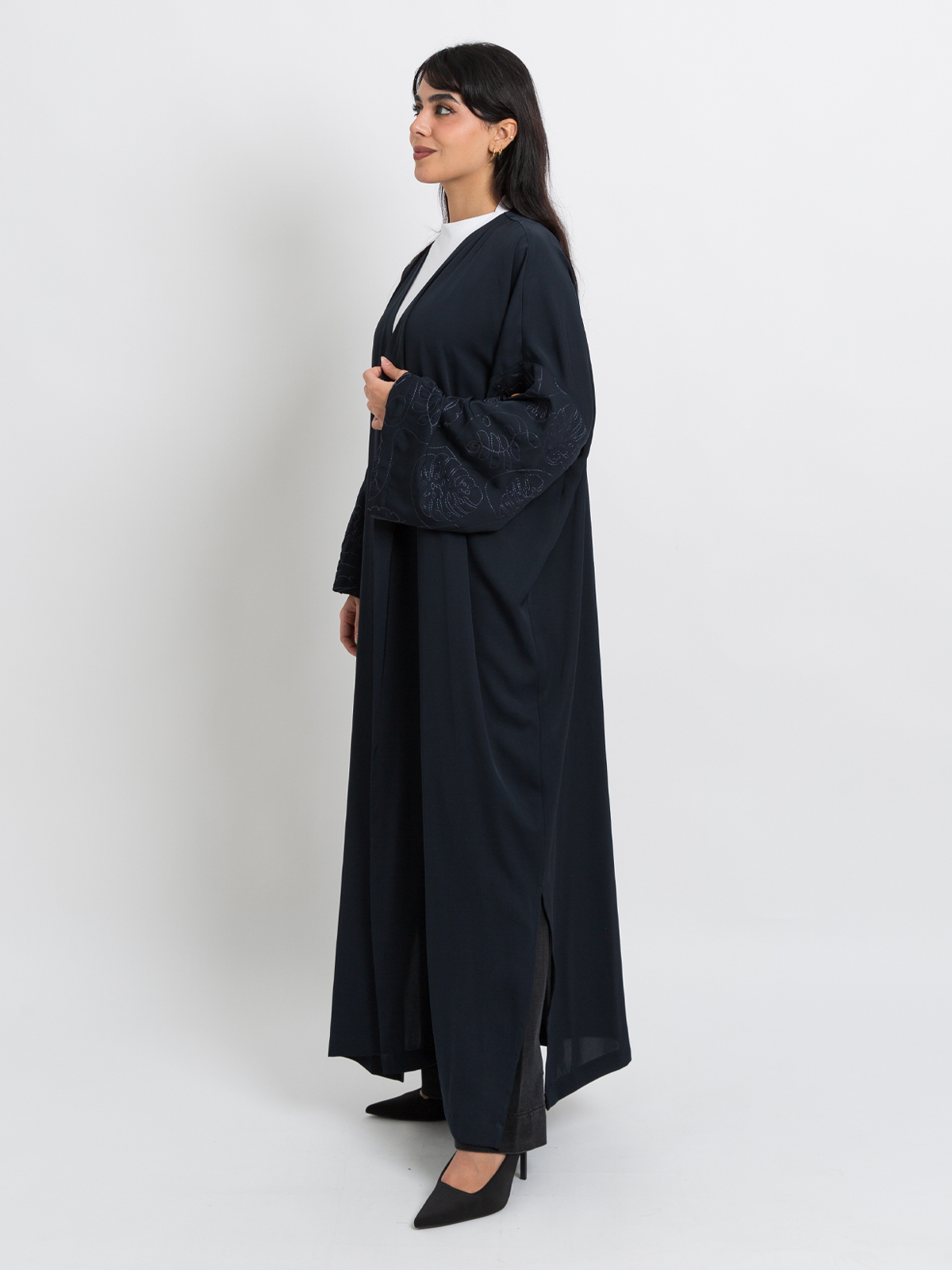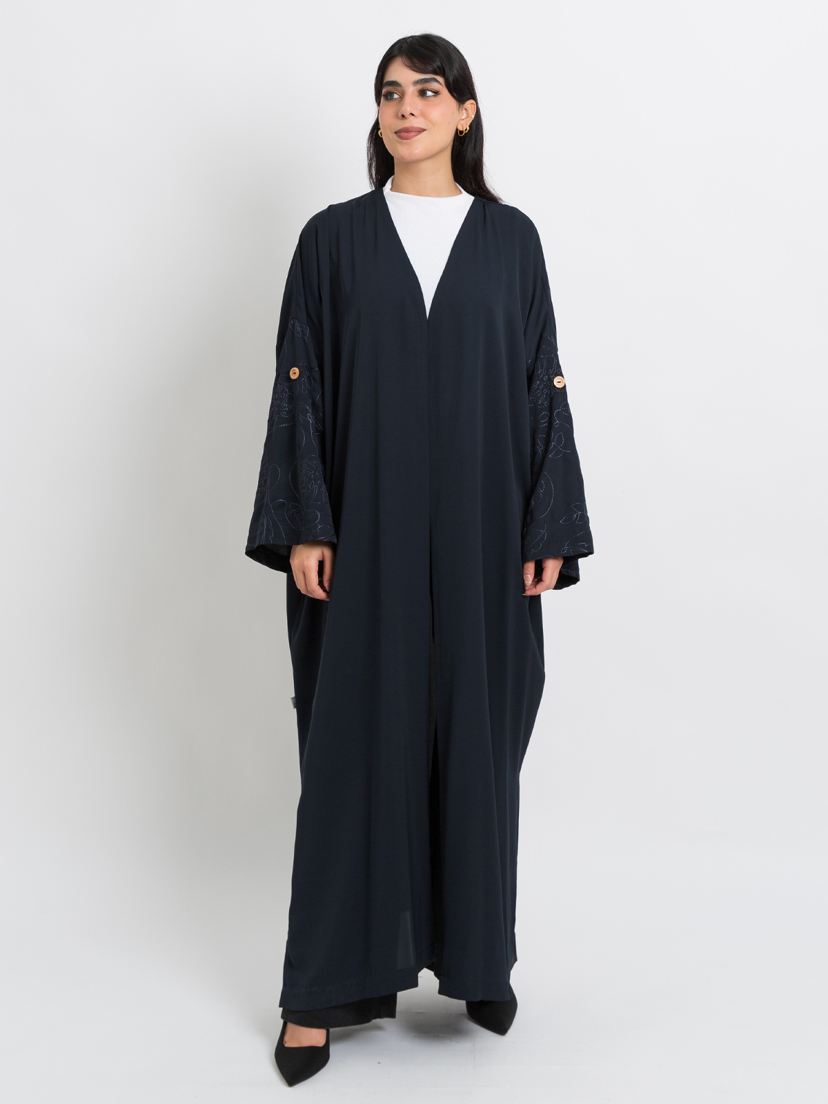 Embroidered Long Wide fit Open Abaya in Crepe Fabric