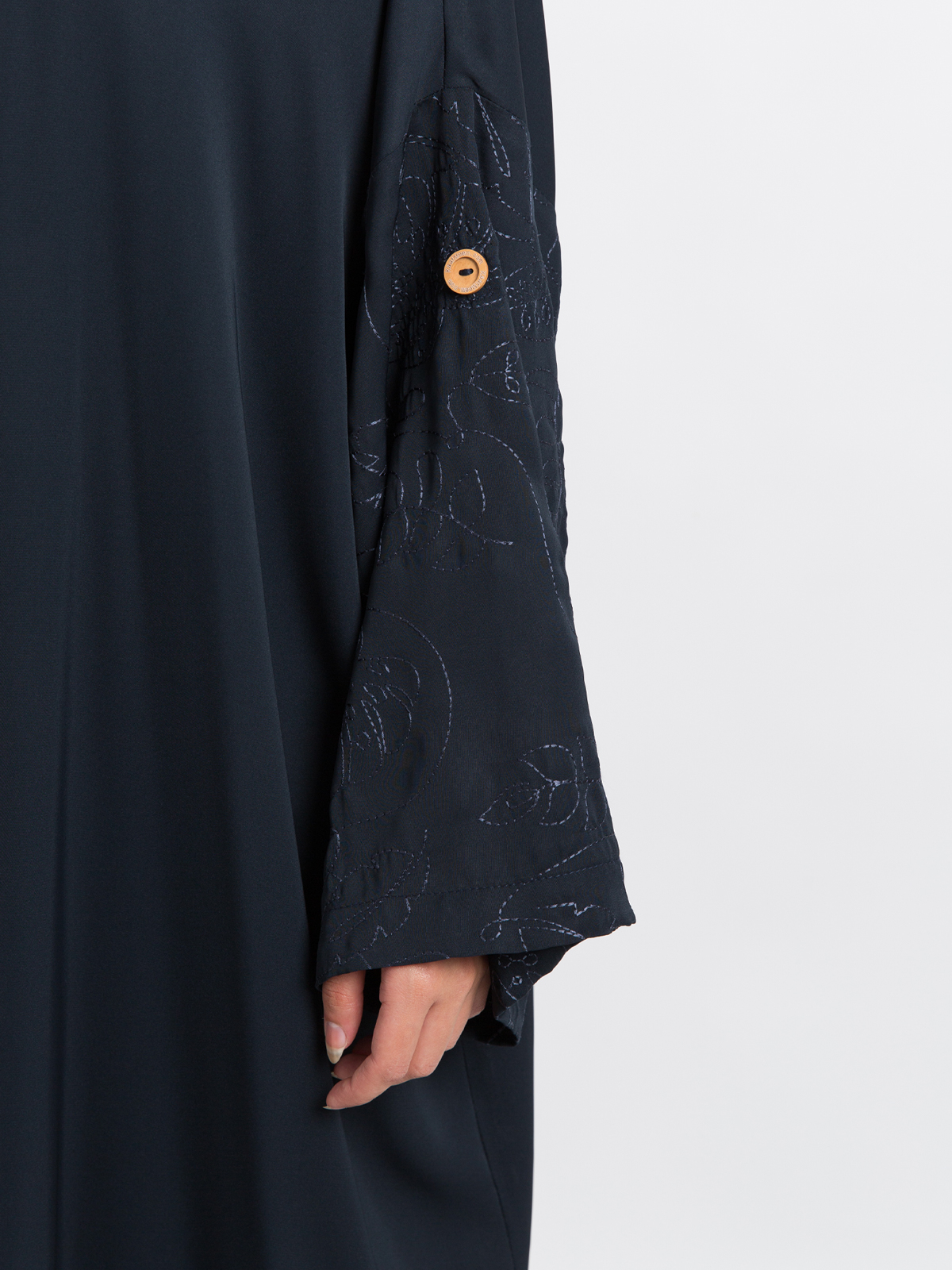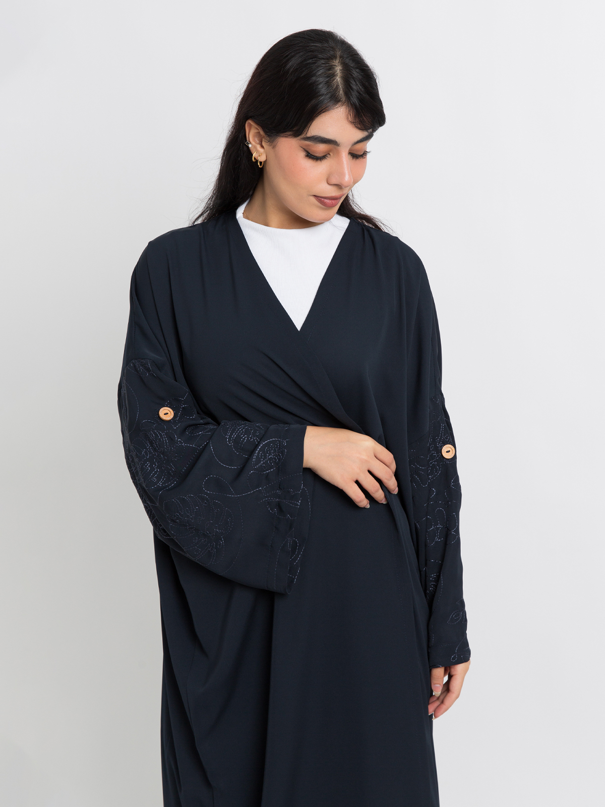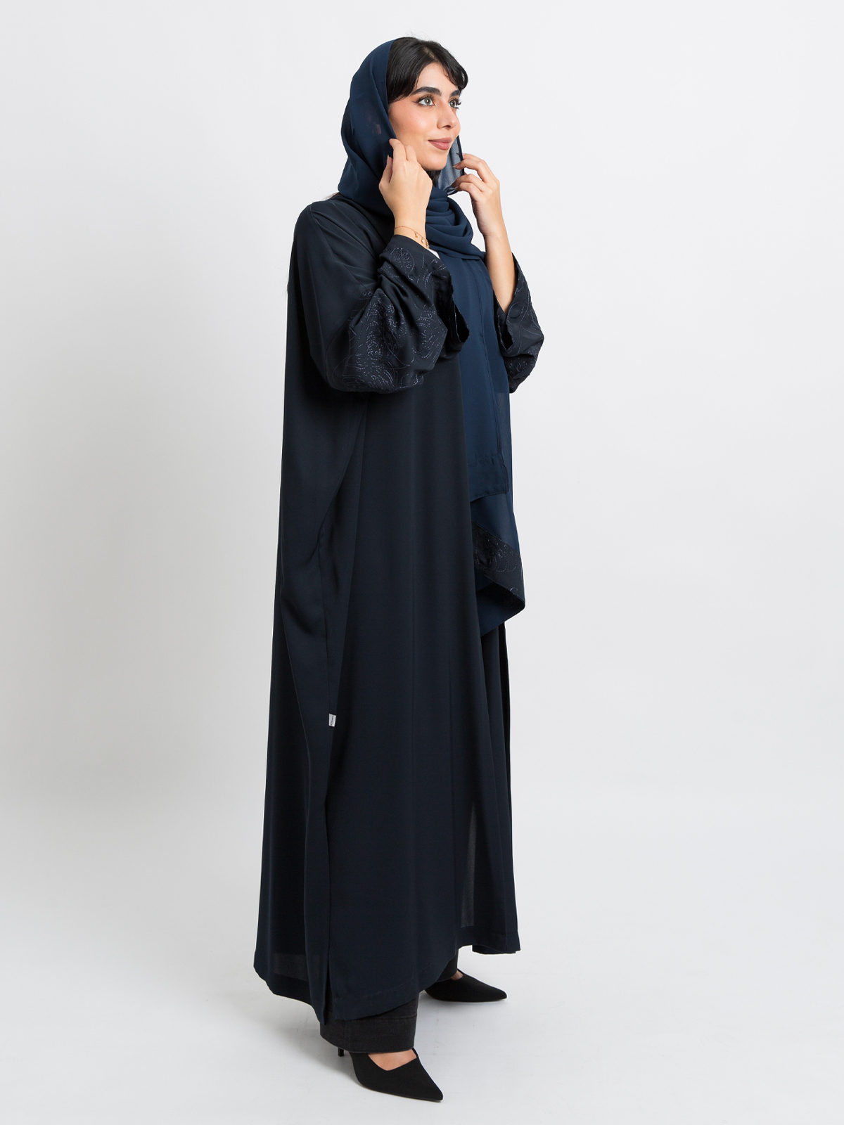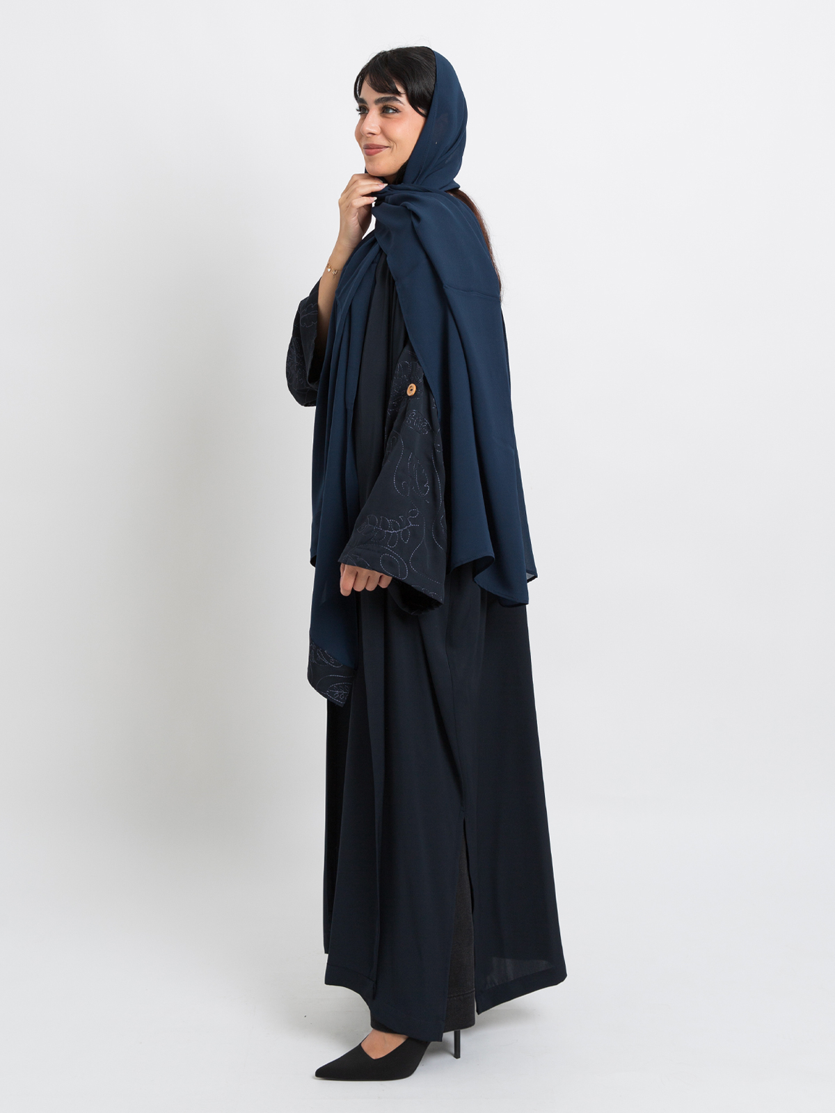 Embroidered Long Wide fit Open Abaya in Crepe Fabric