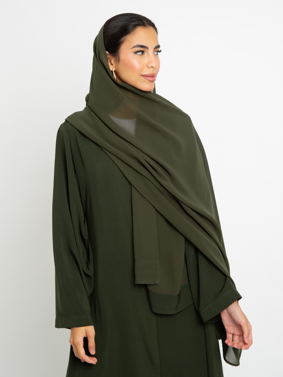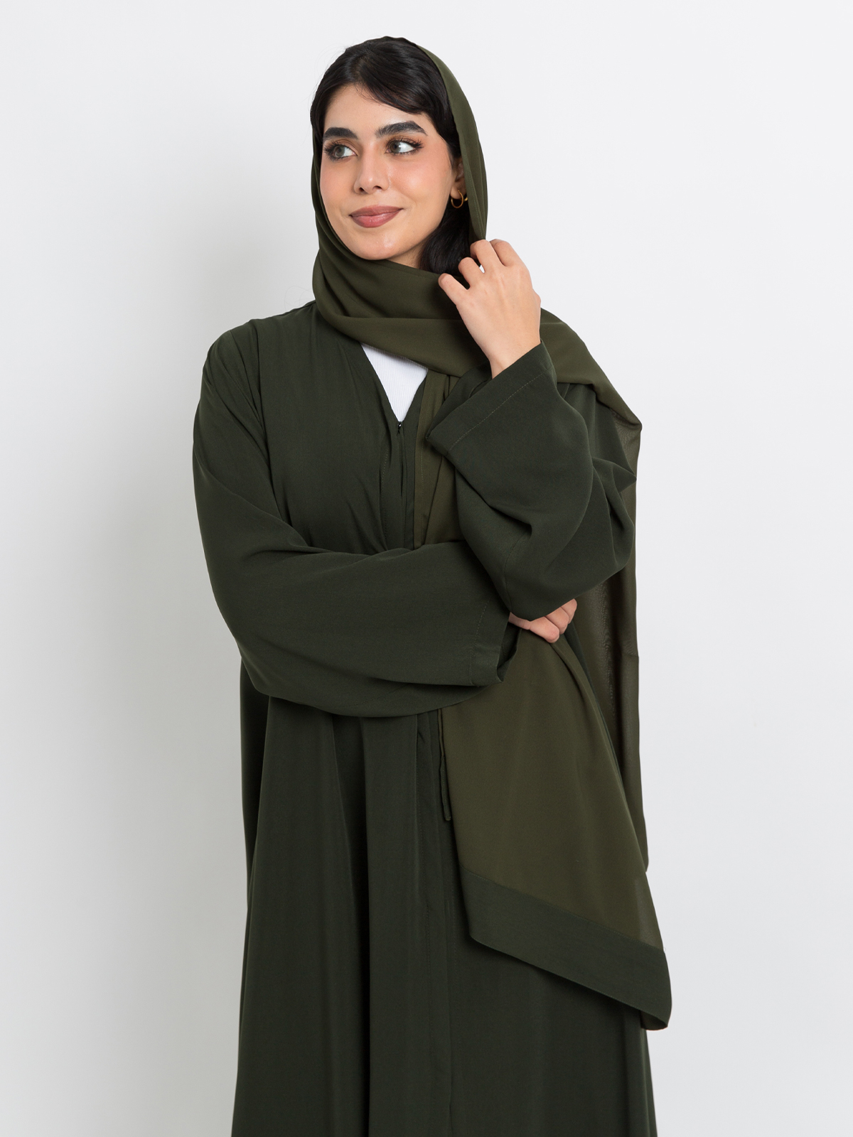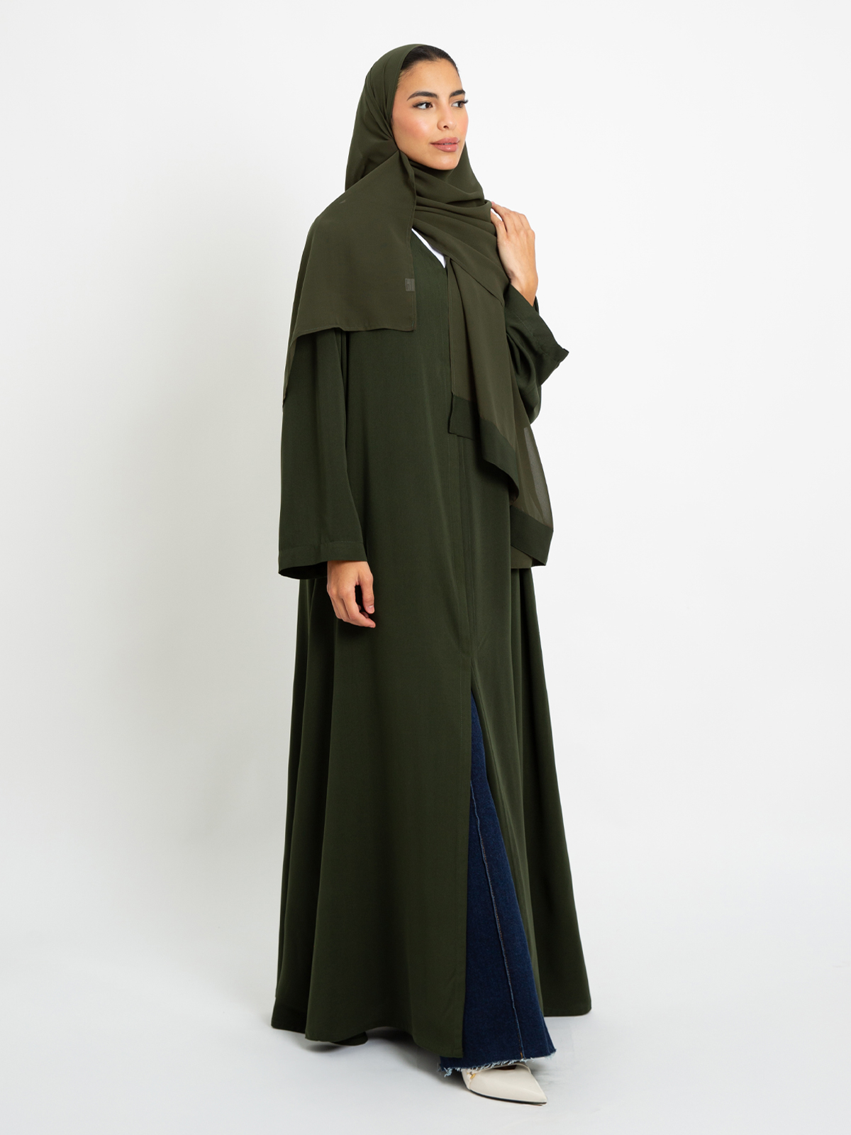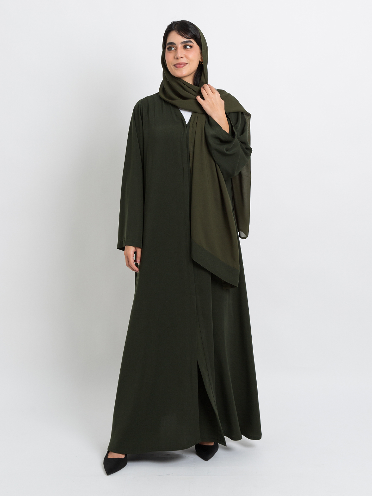 Plain Half Cloche A-Cut Long Closed Abaya in Crepe Fabric
