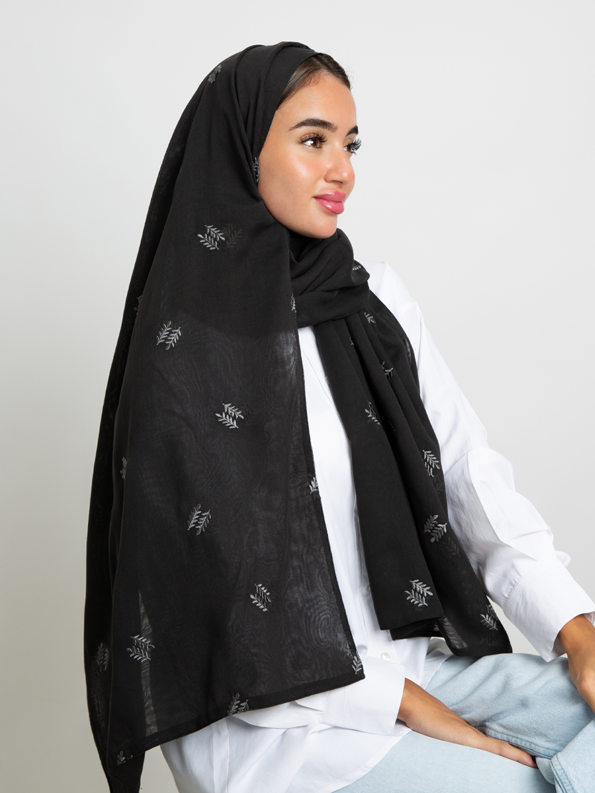 Your perfect choice one-layered, non-slip voile hijab that gives you a steady hijab wrap shape all day long with a stylish look. The tarha features spikes embroidery all over the tarha, adding a touch of sophistication to your look. Your go-to choice for comfy elegant looks!