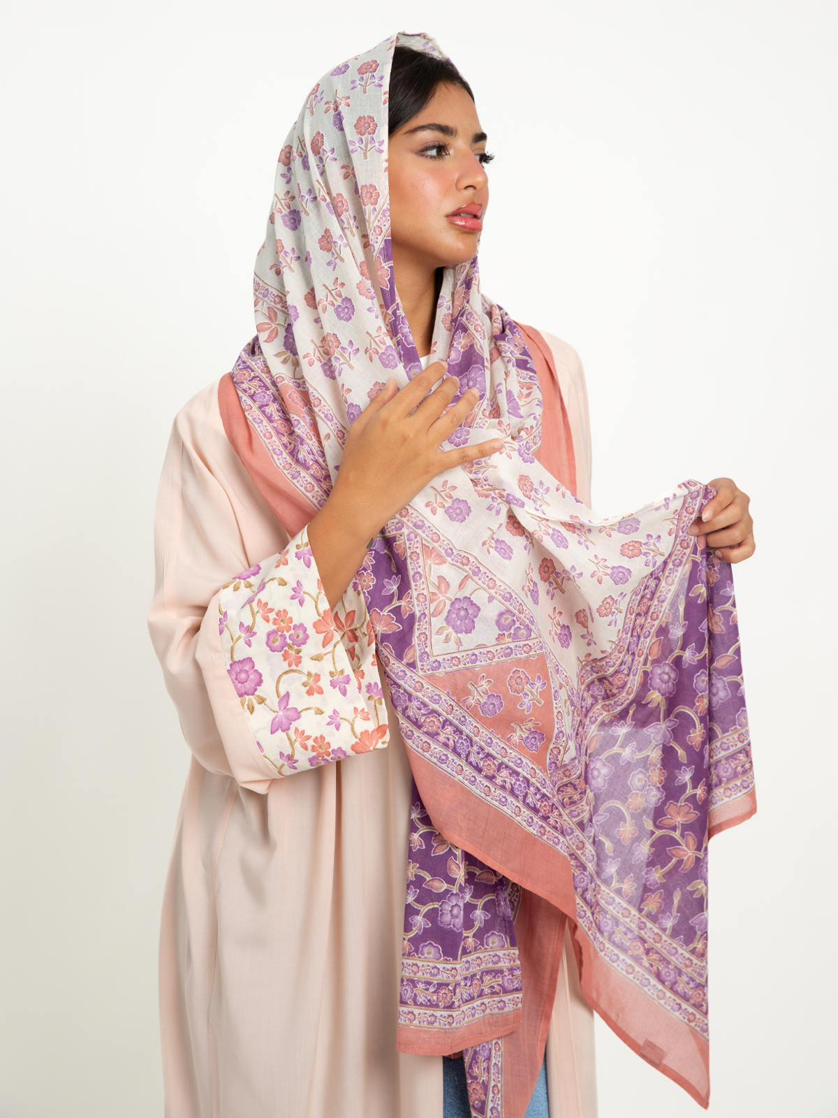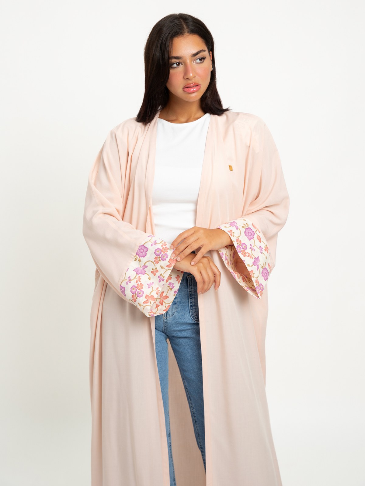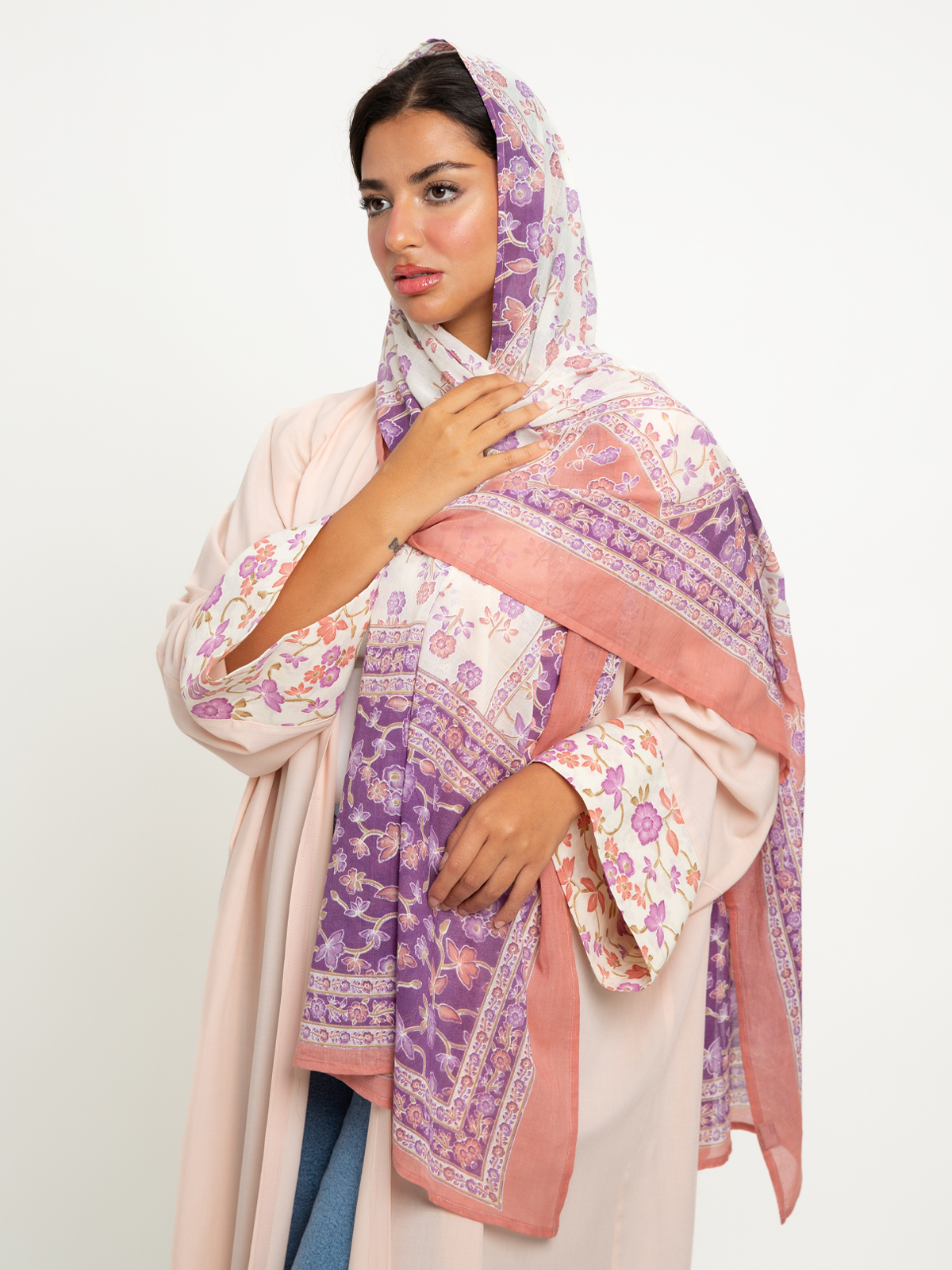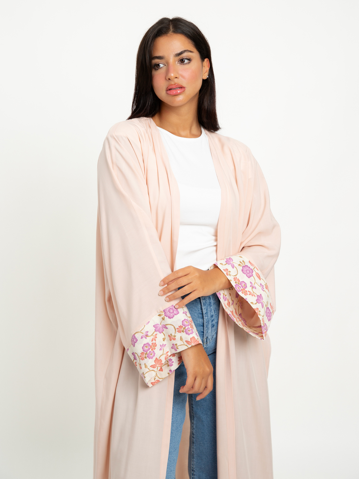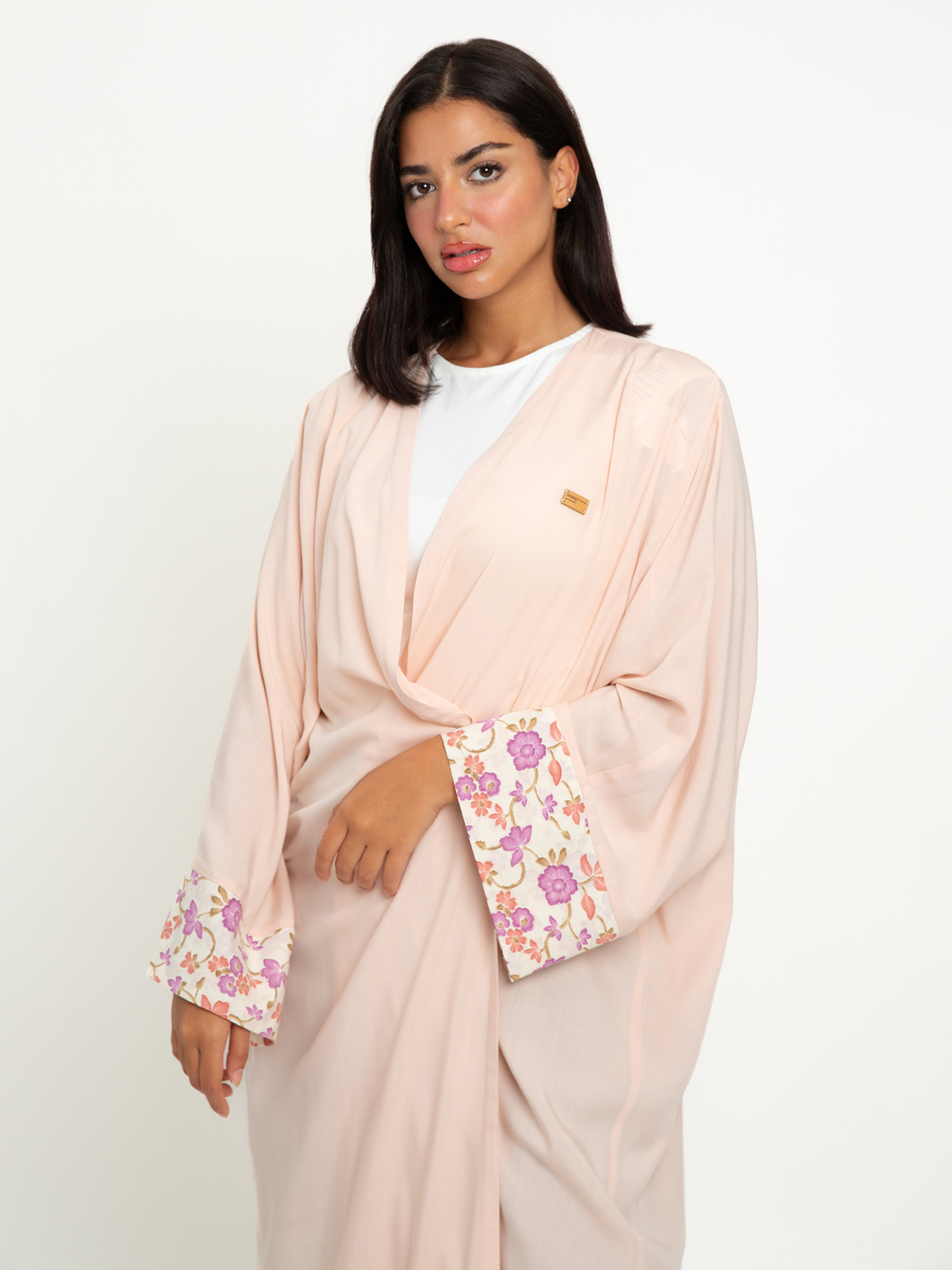 Wide-fit Long Open Abaya in Printed Cotton Fabric