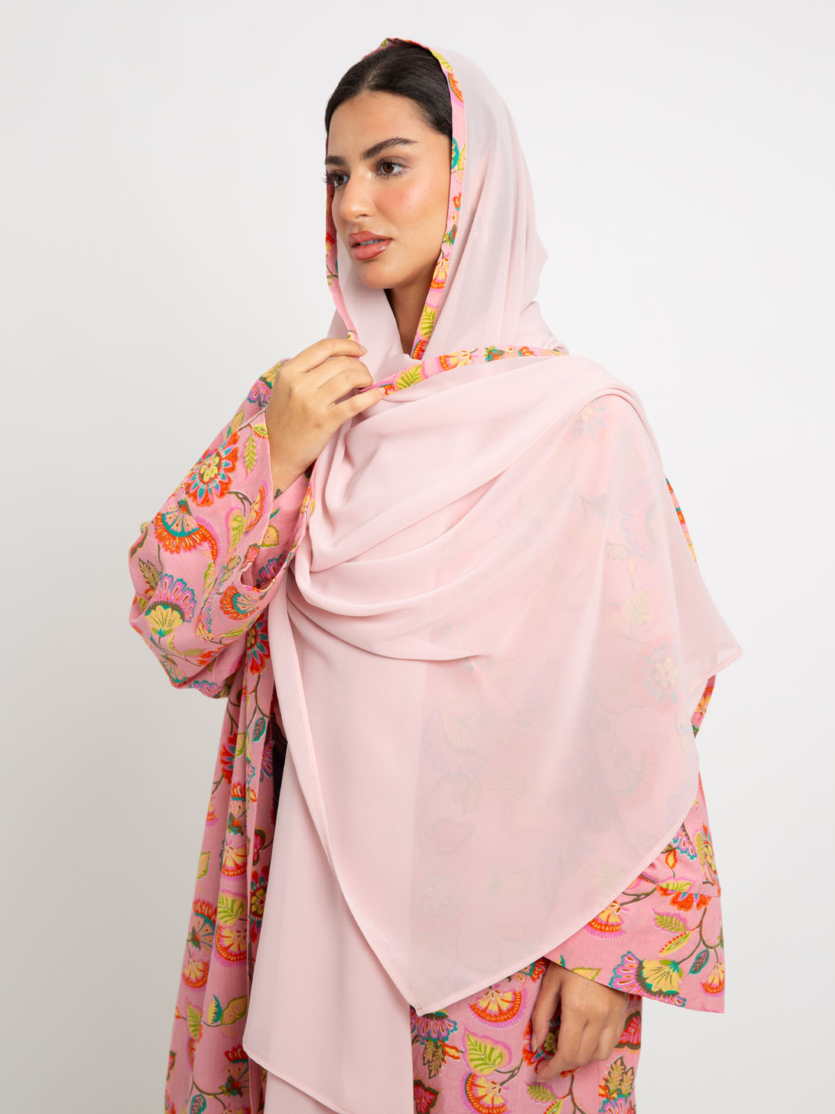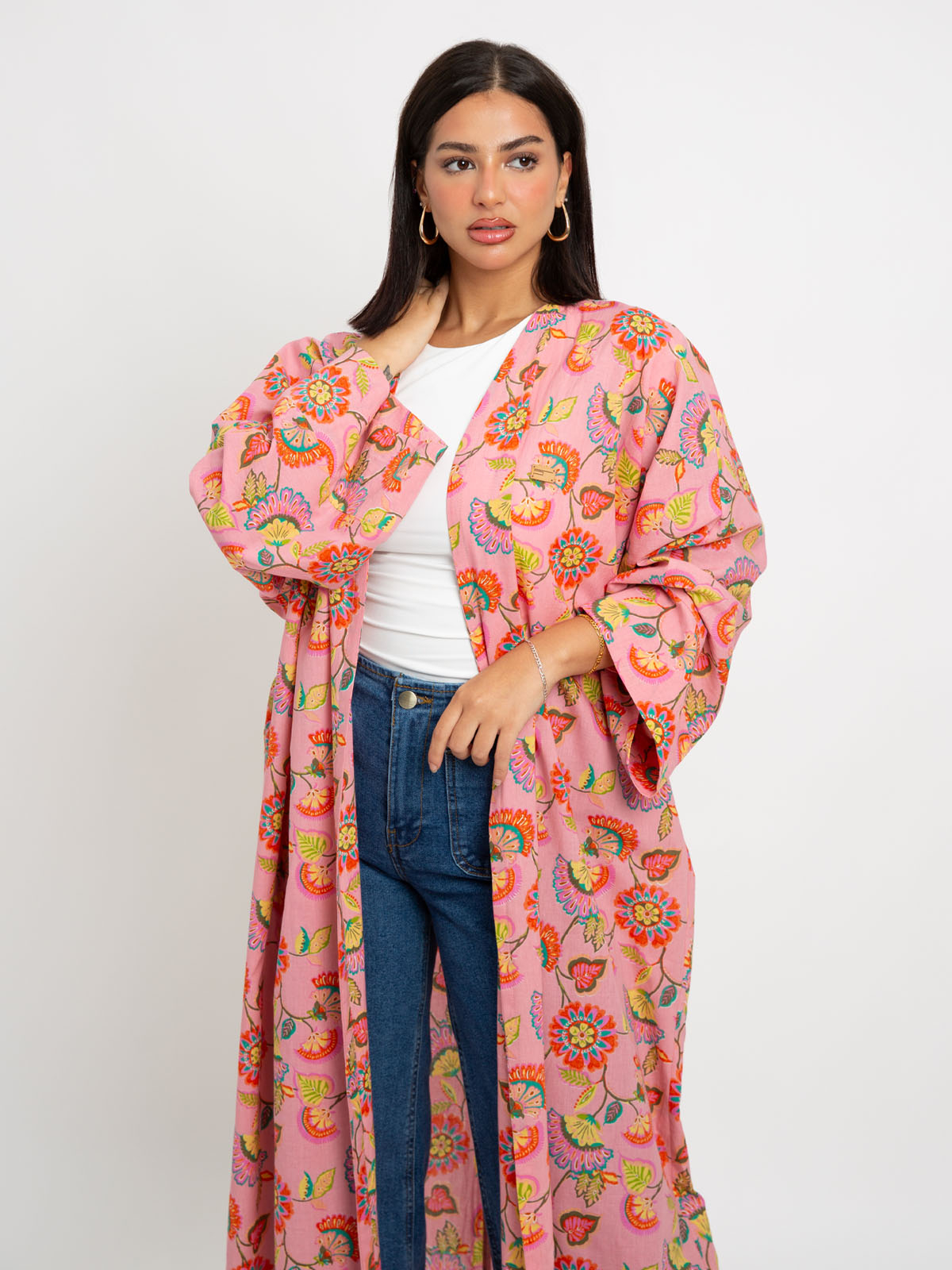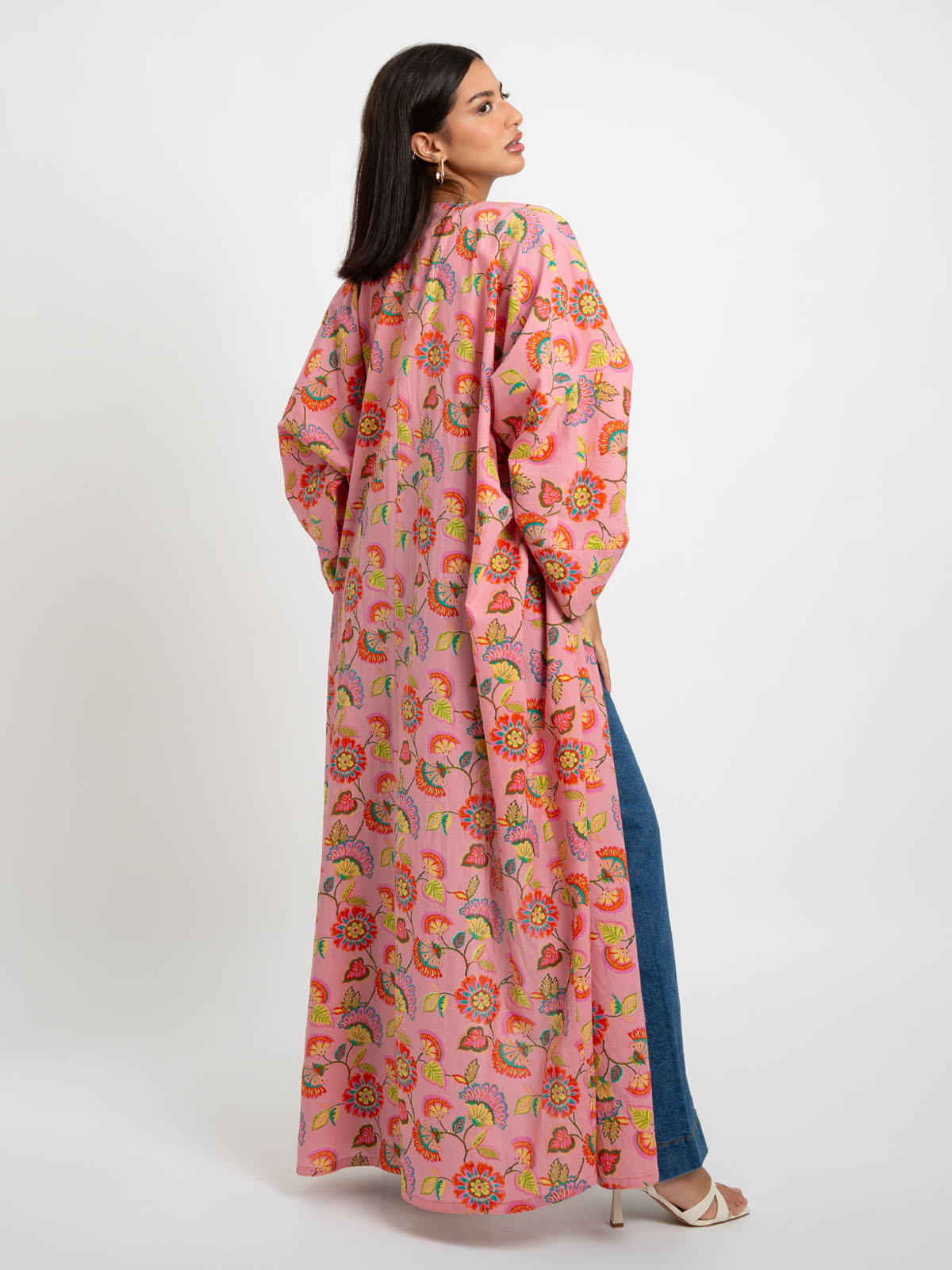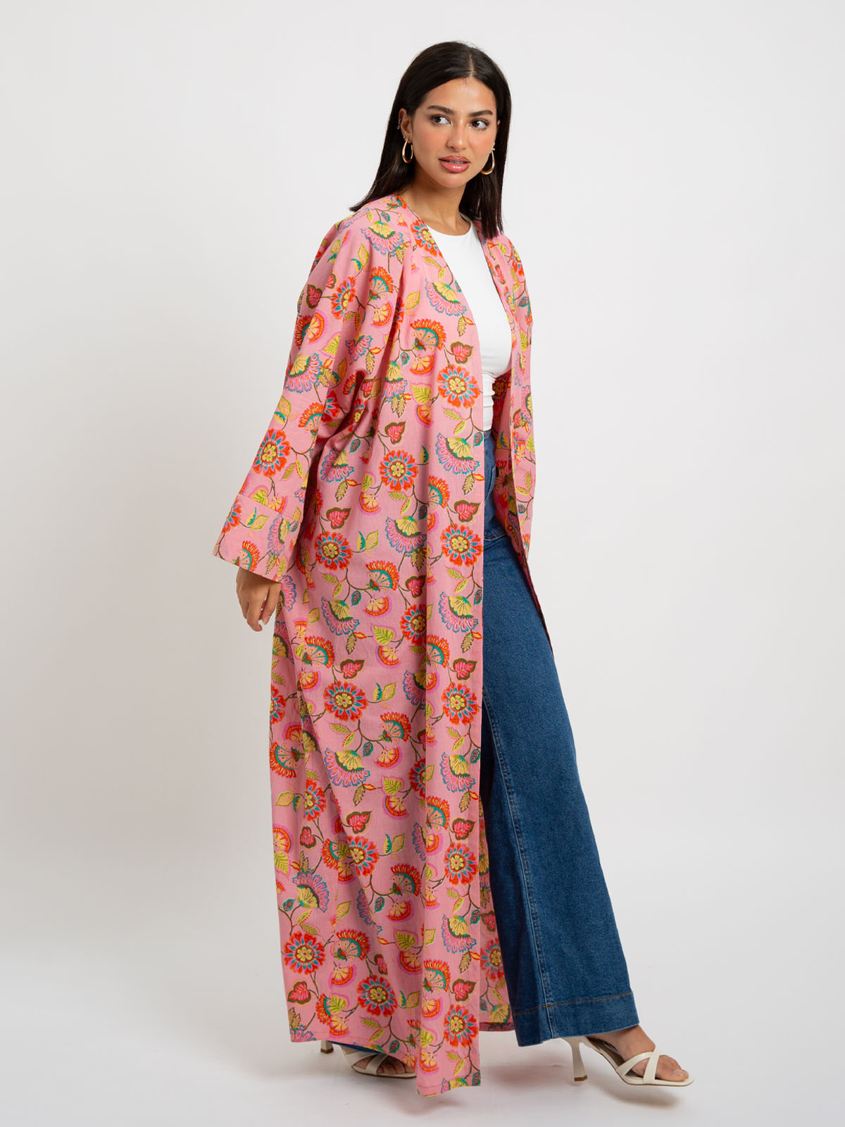 Wide-fit Long Open Abaya in ِِPrinted Cotton Fabric