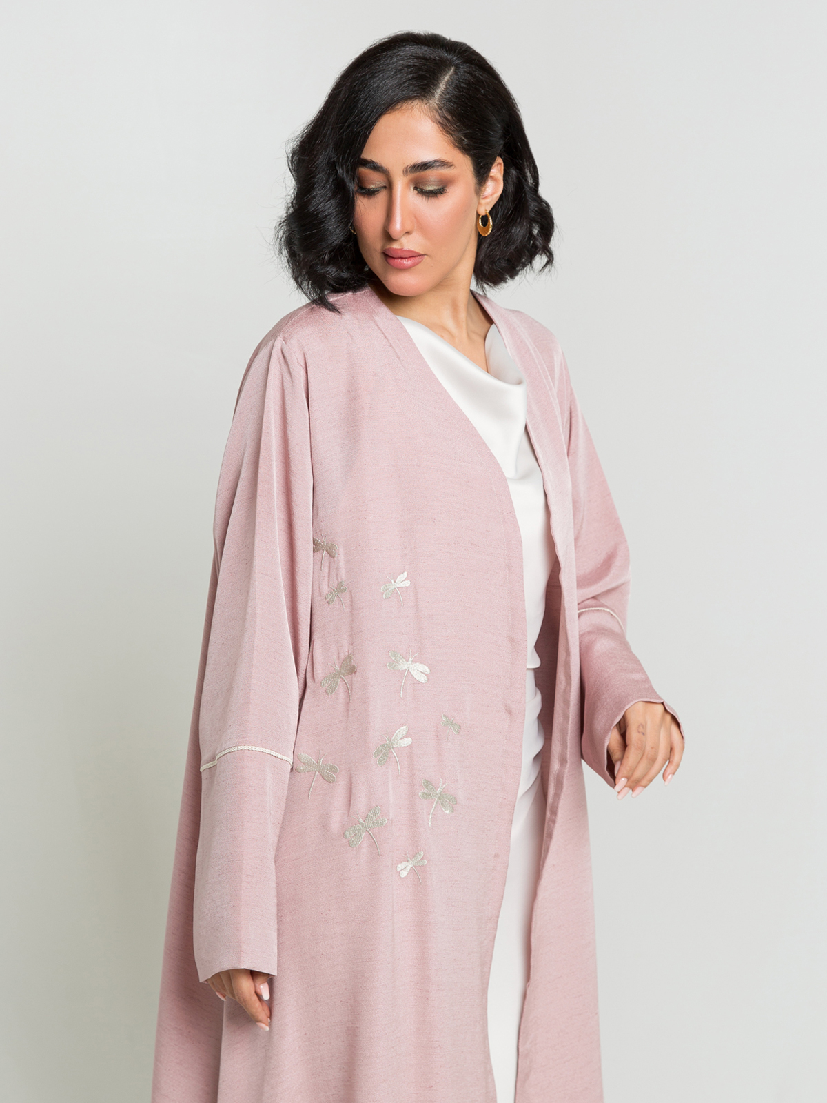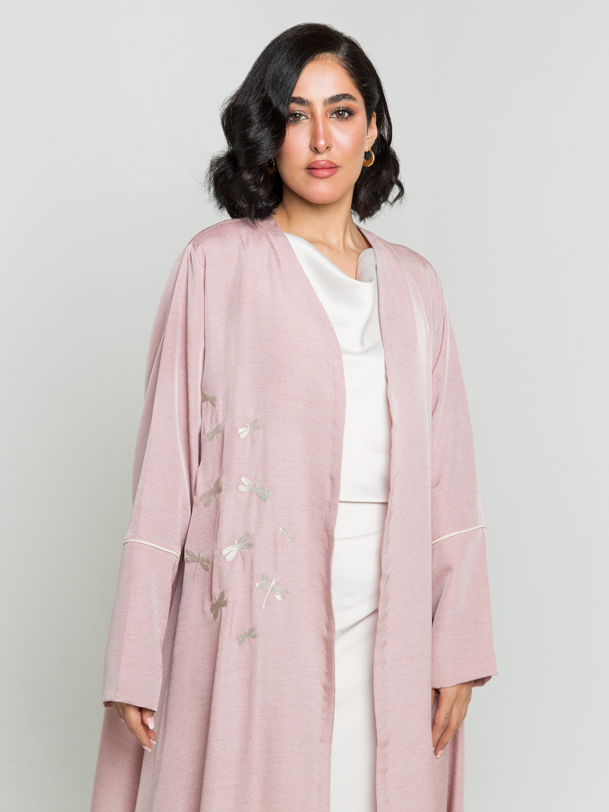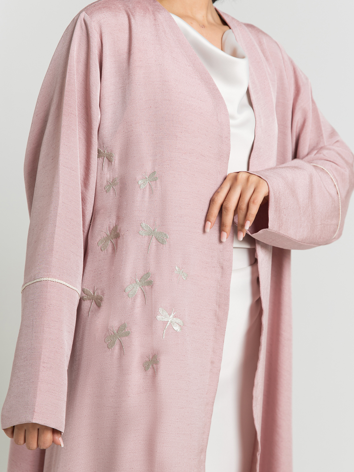 Pink Dragonfly Dance Embroidery A-Cut Abaya