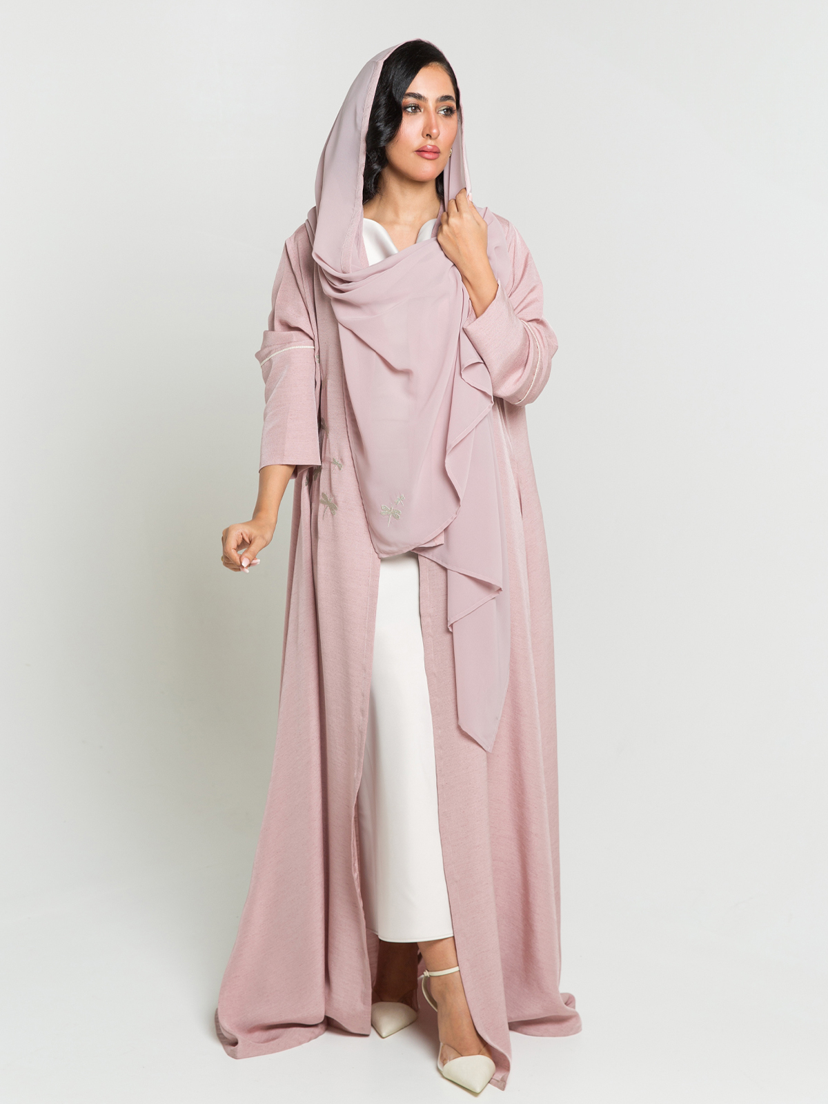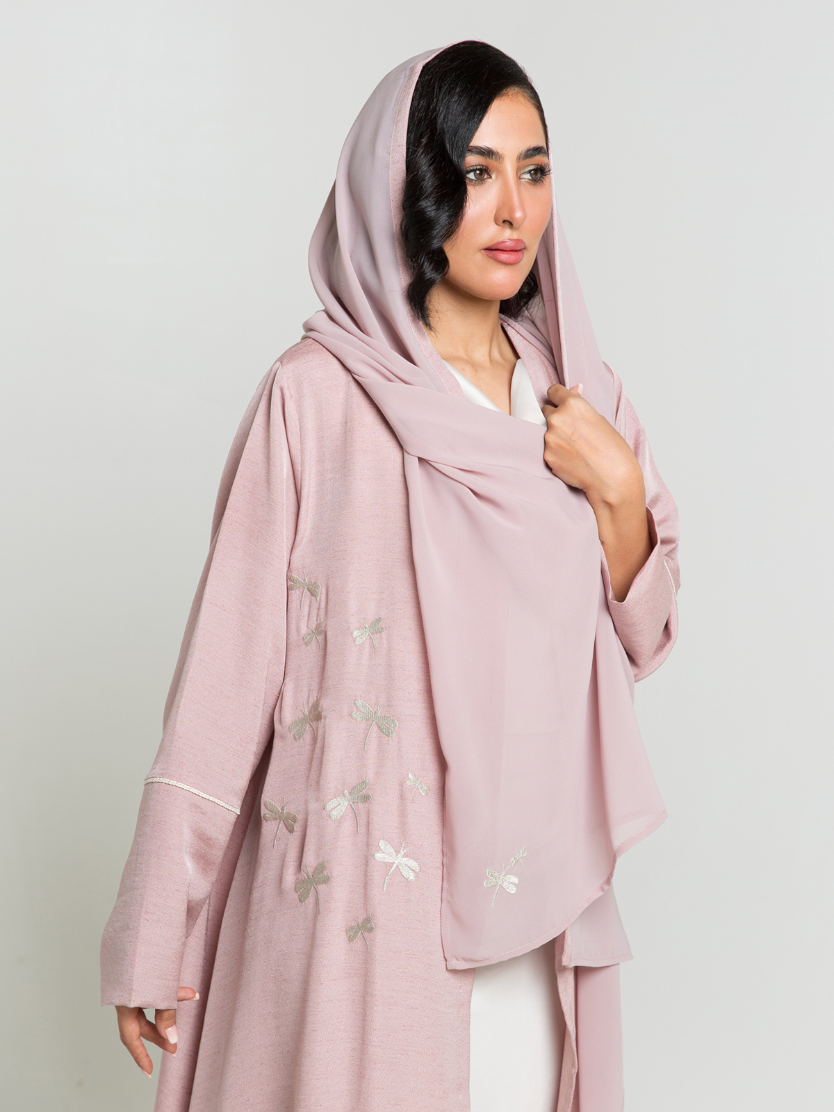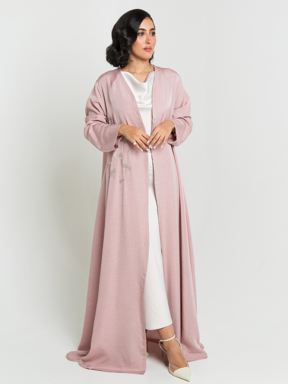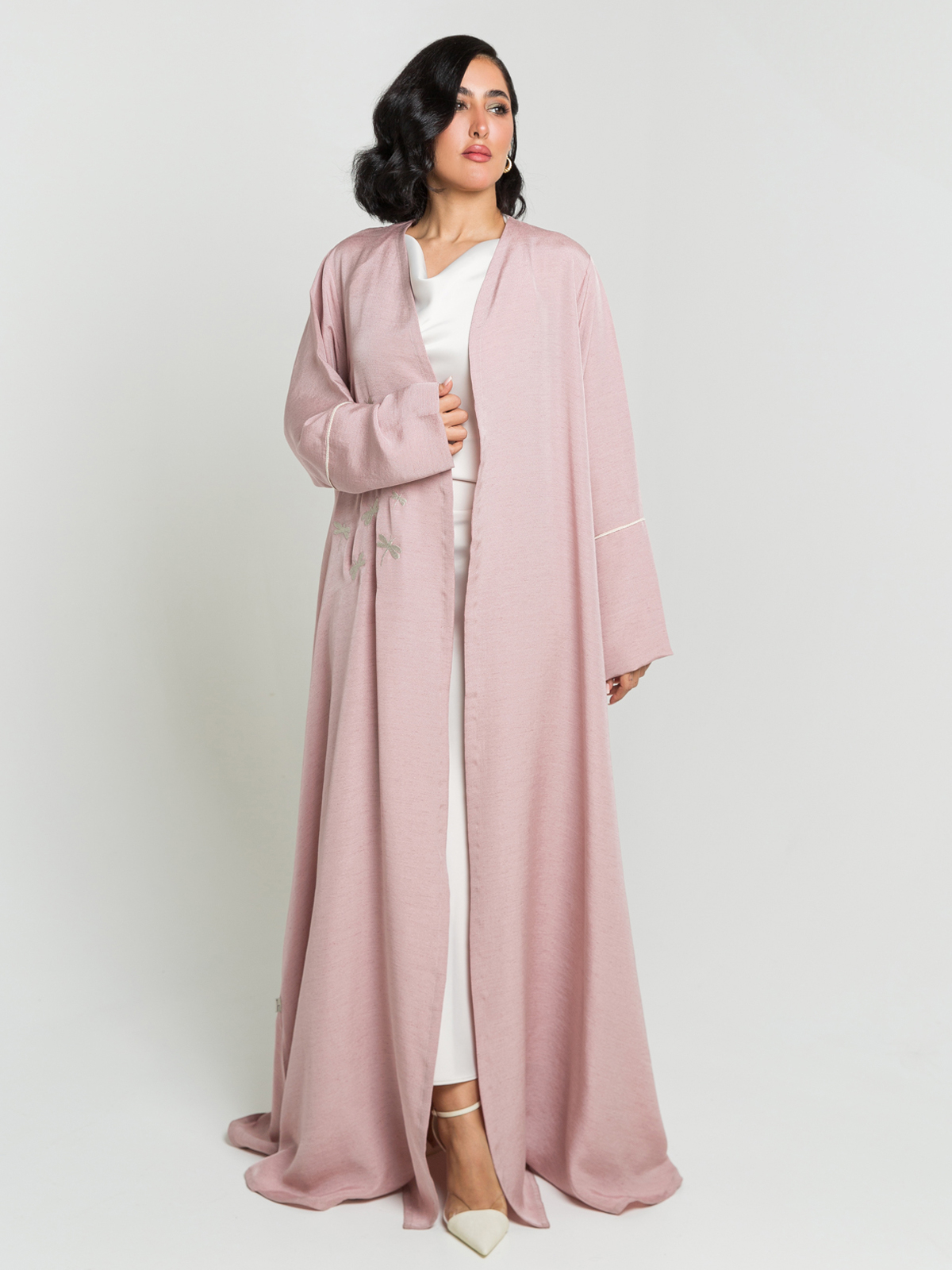 Pink Dragonfly Dance Embroidery A-Cut Abaya