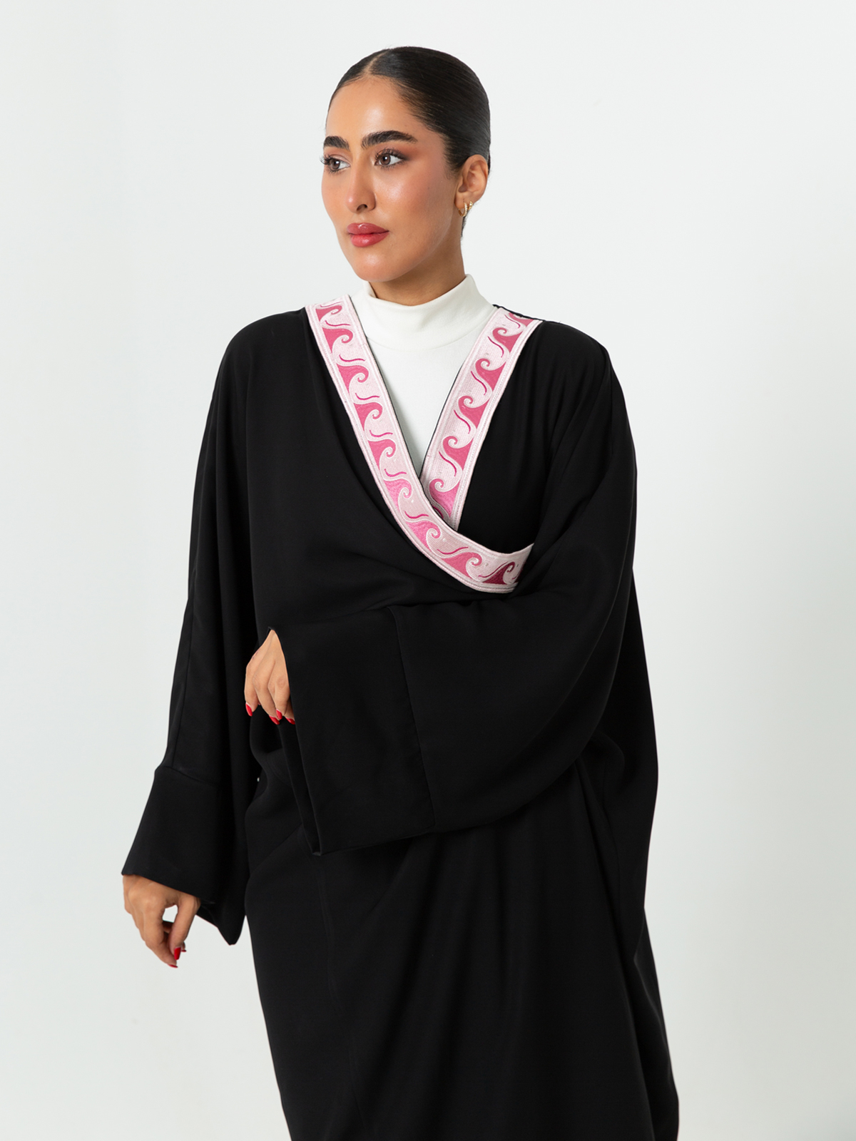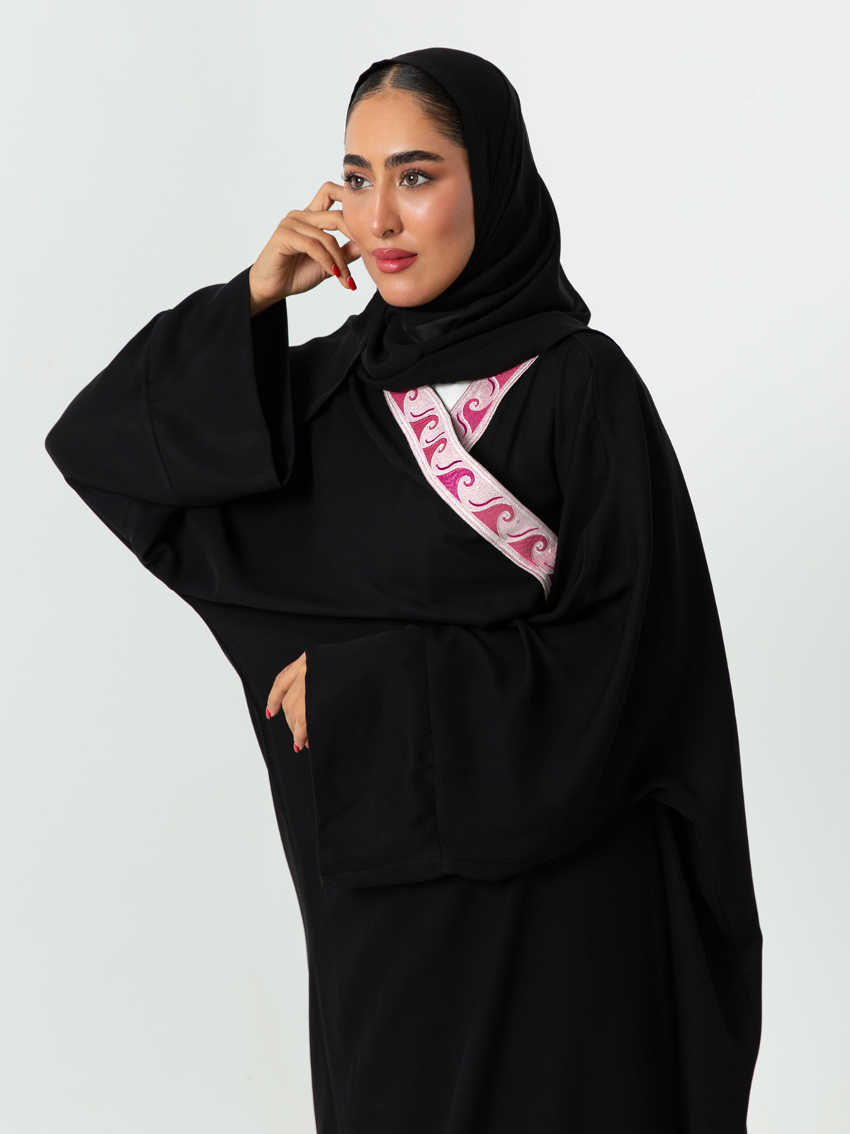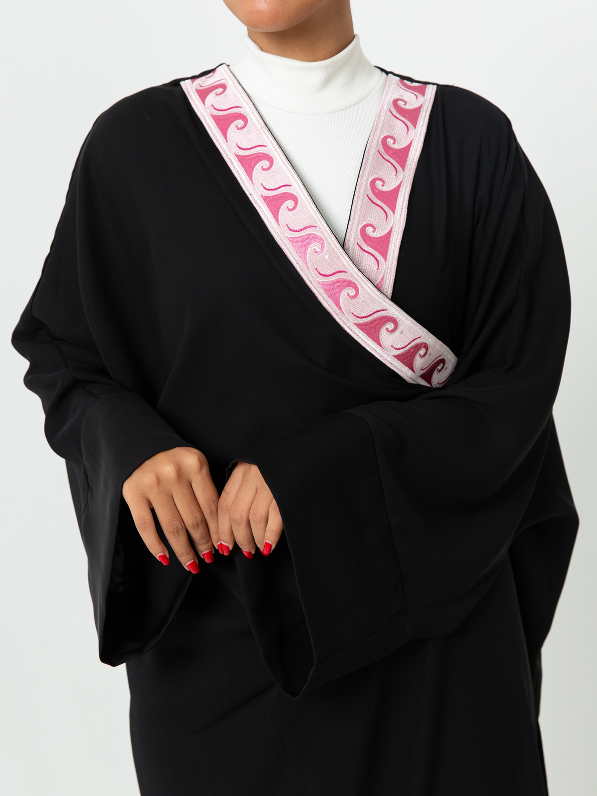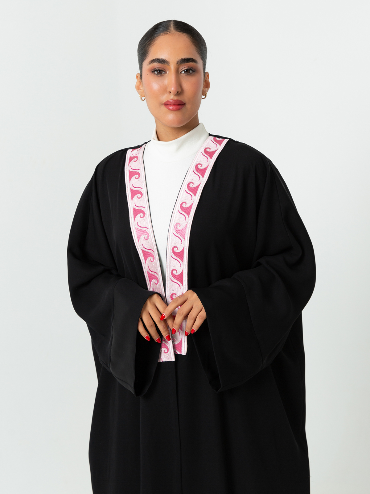 Open Wide fit Abaya in Fancy Crepe Fabric