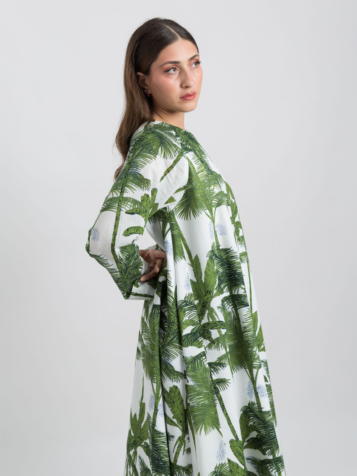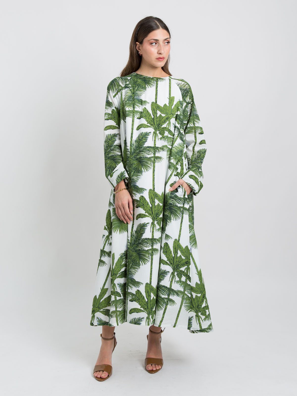 Half Cloche Long Sleeves Jalabiya Ankle Length in Printed Cotton Fabric