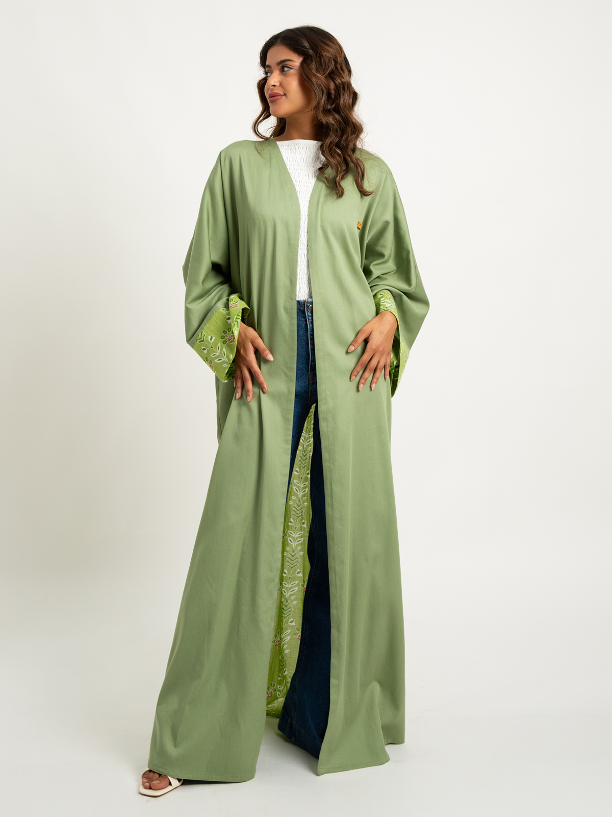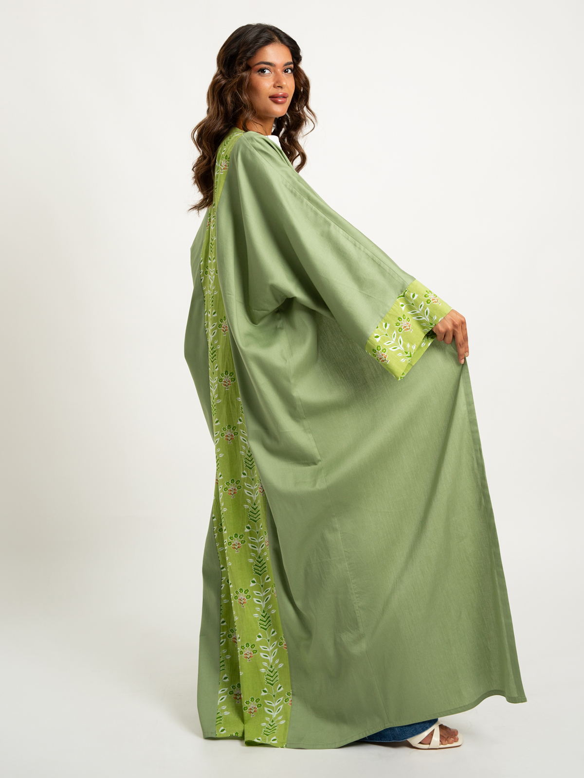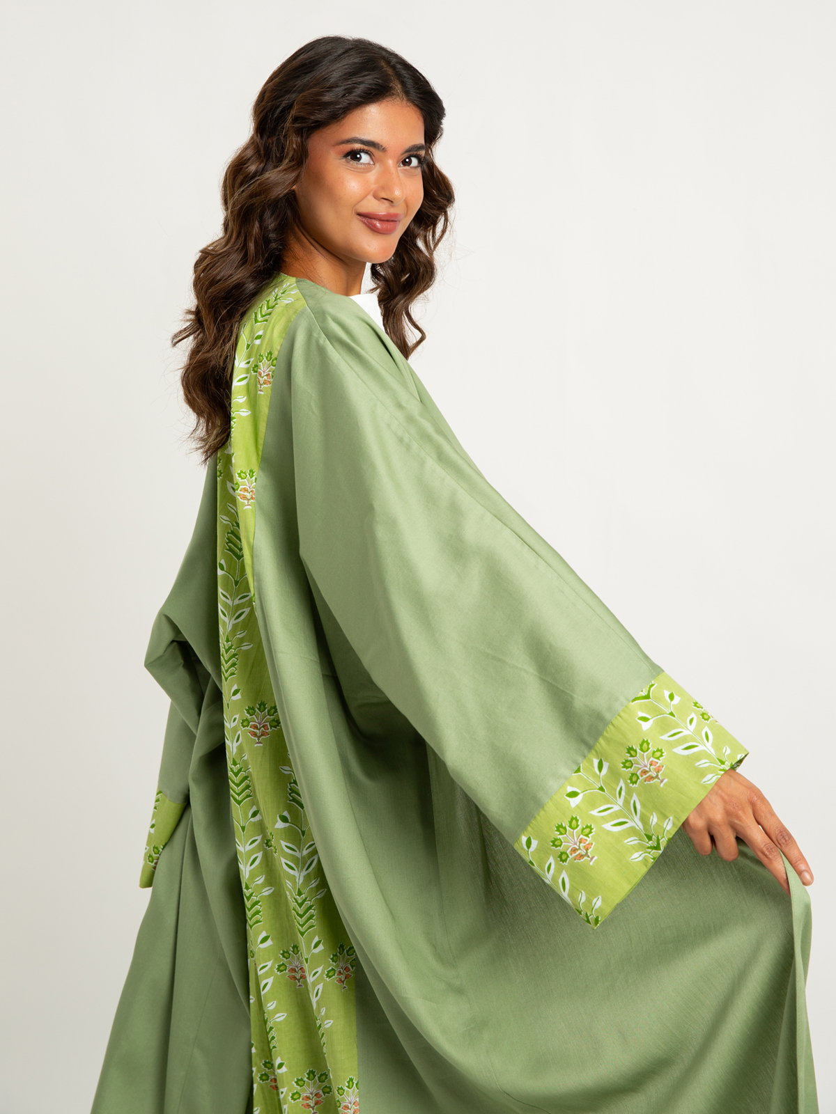 Wide-fit Long Open Abaya in Printed Cotton Fabric