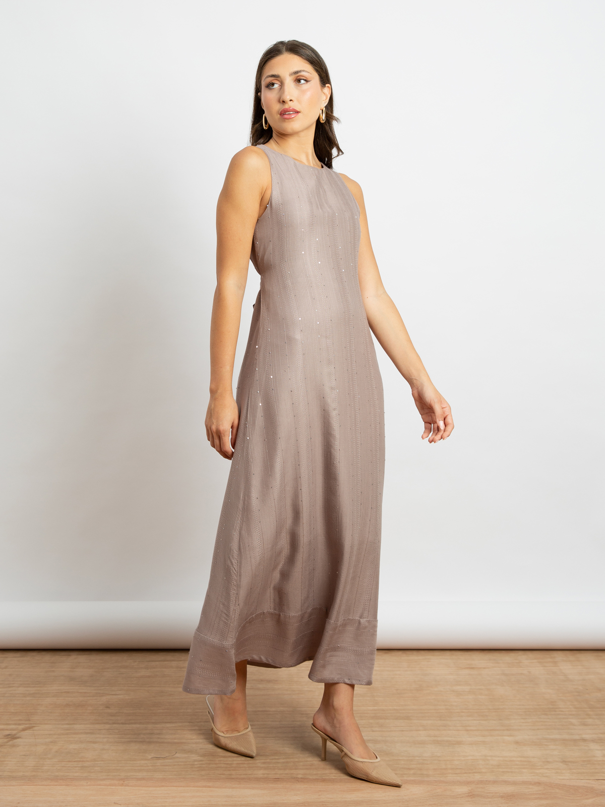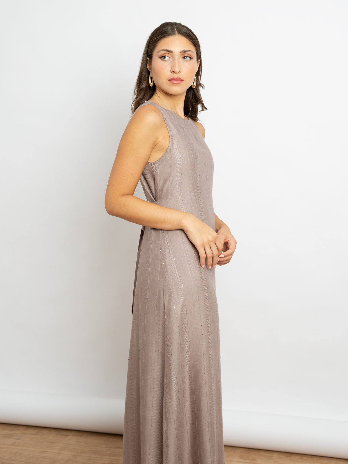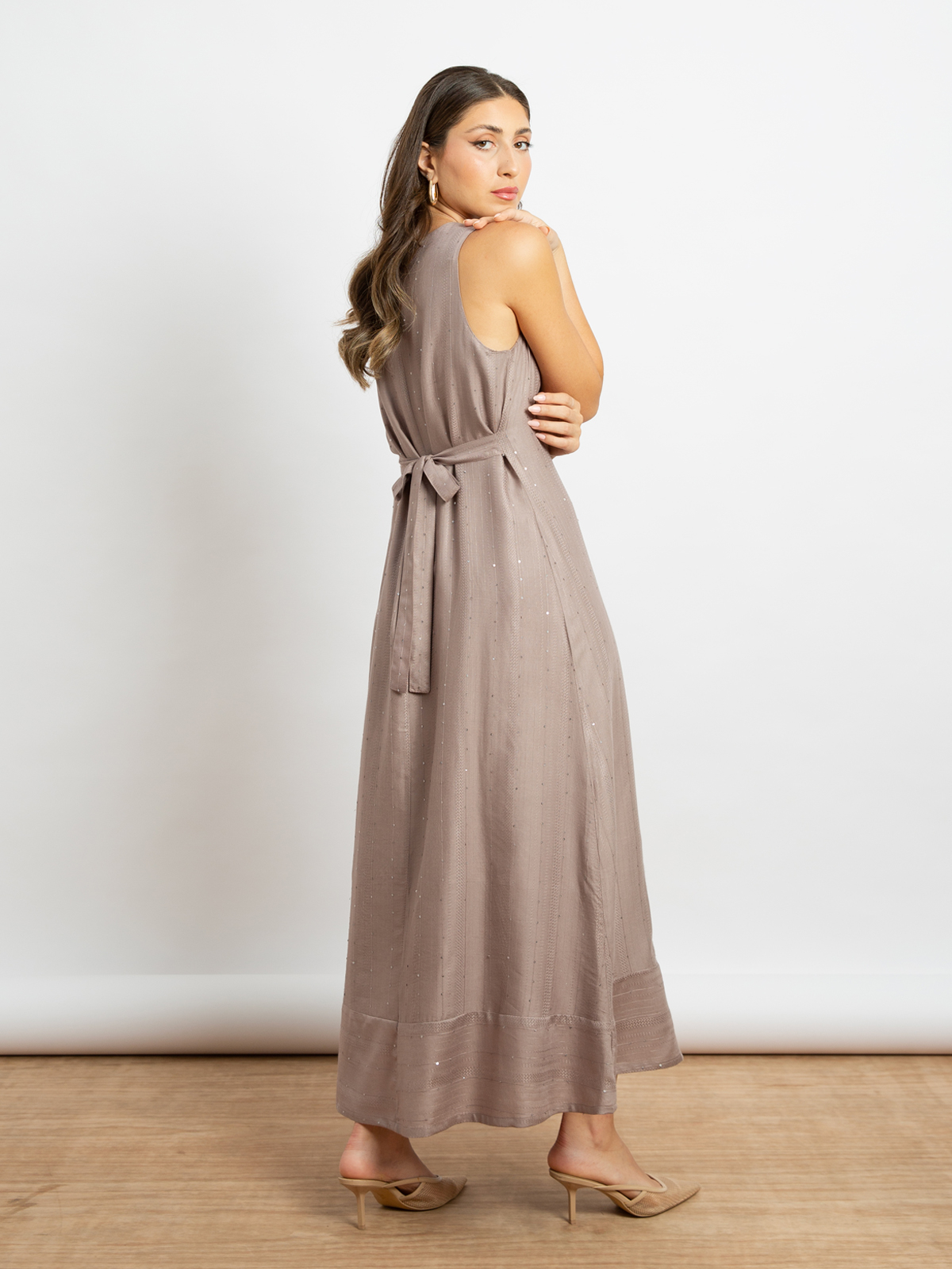 Rosewood Sequin Stripes - Sleeveless Long Dress with Belt