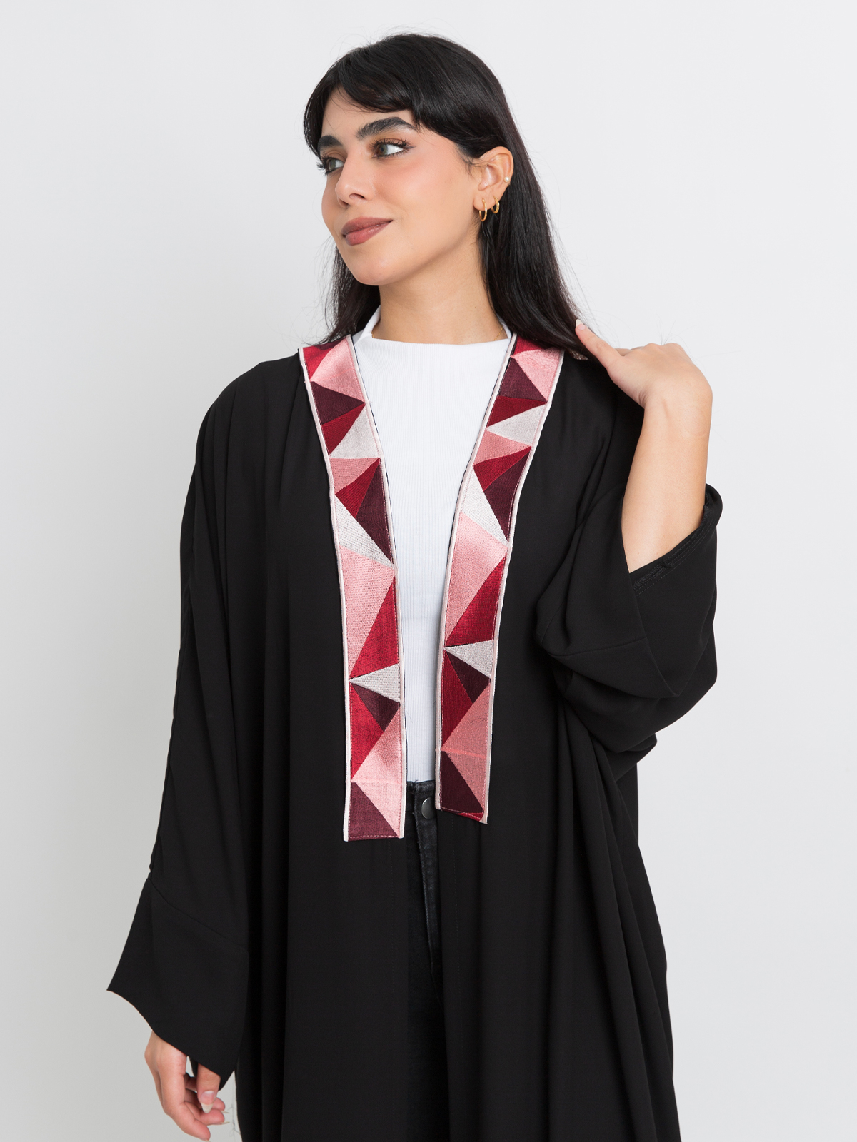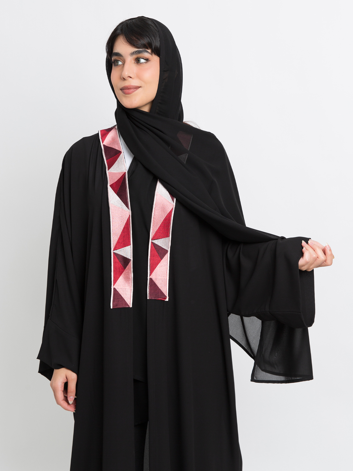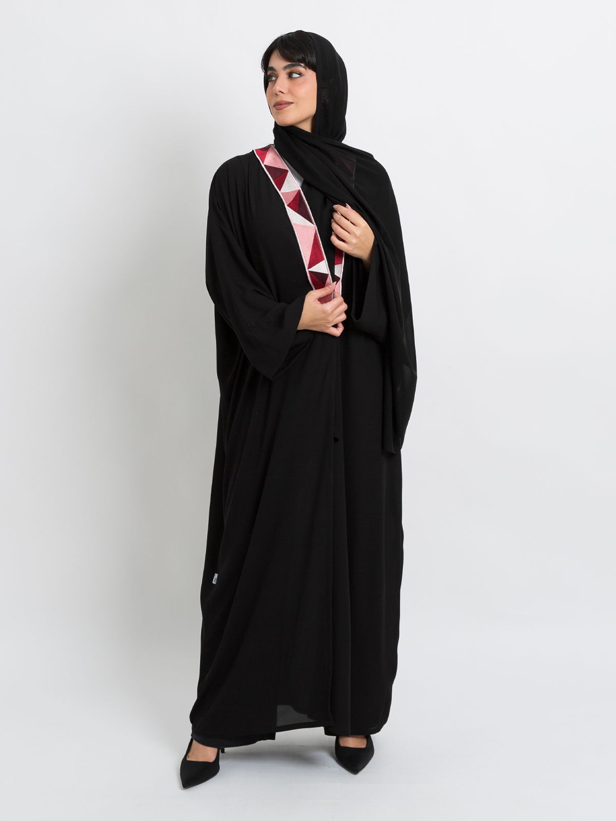 Wide-Fit with Kulfa Long Open Abaya in Light Crepe Fabric