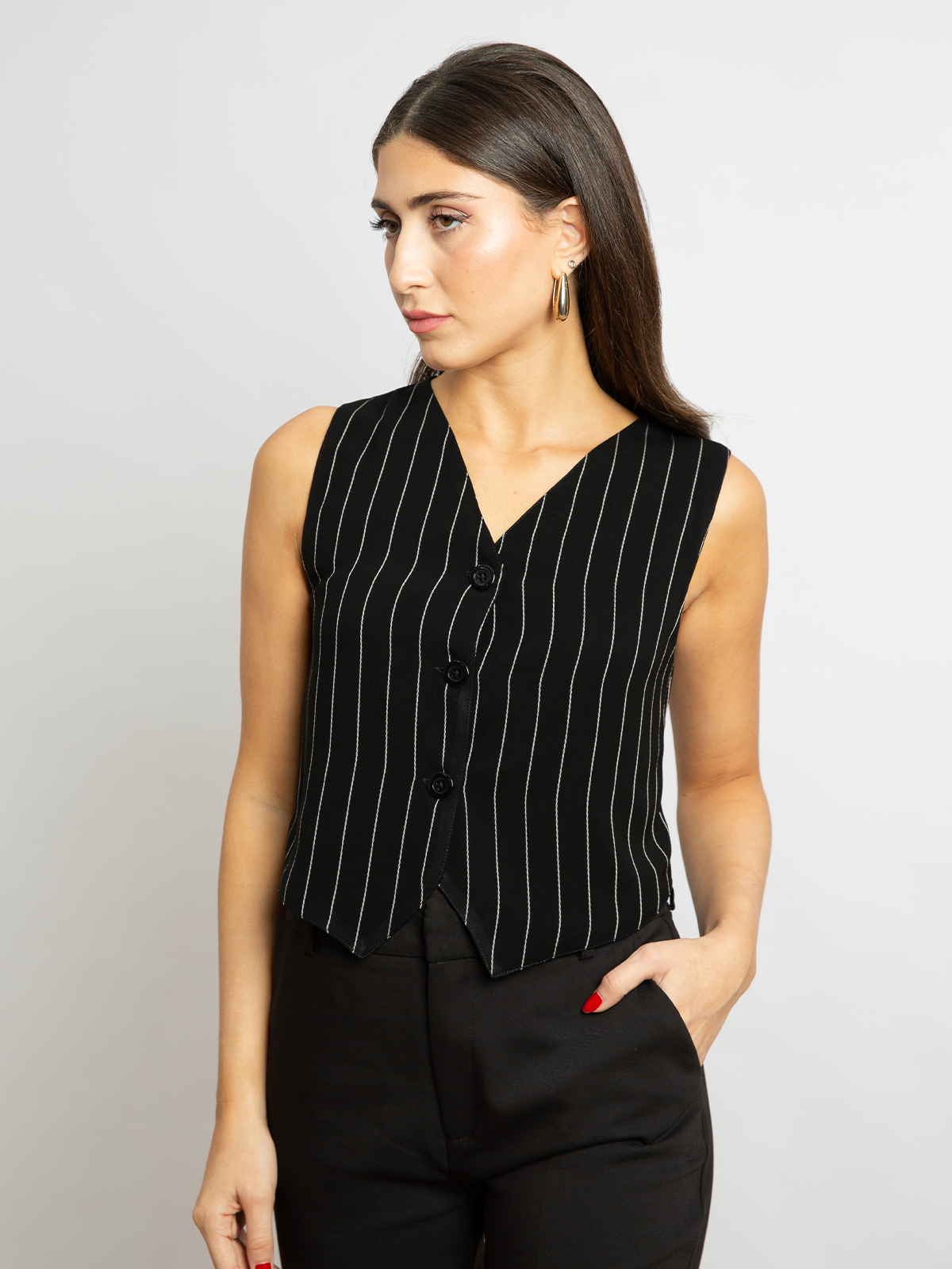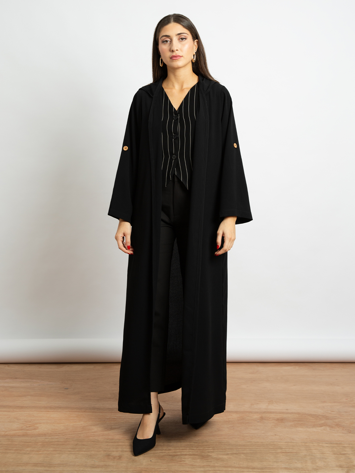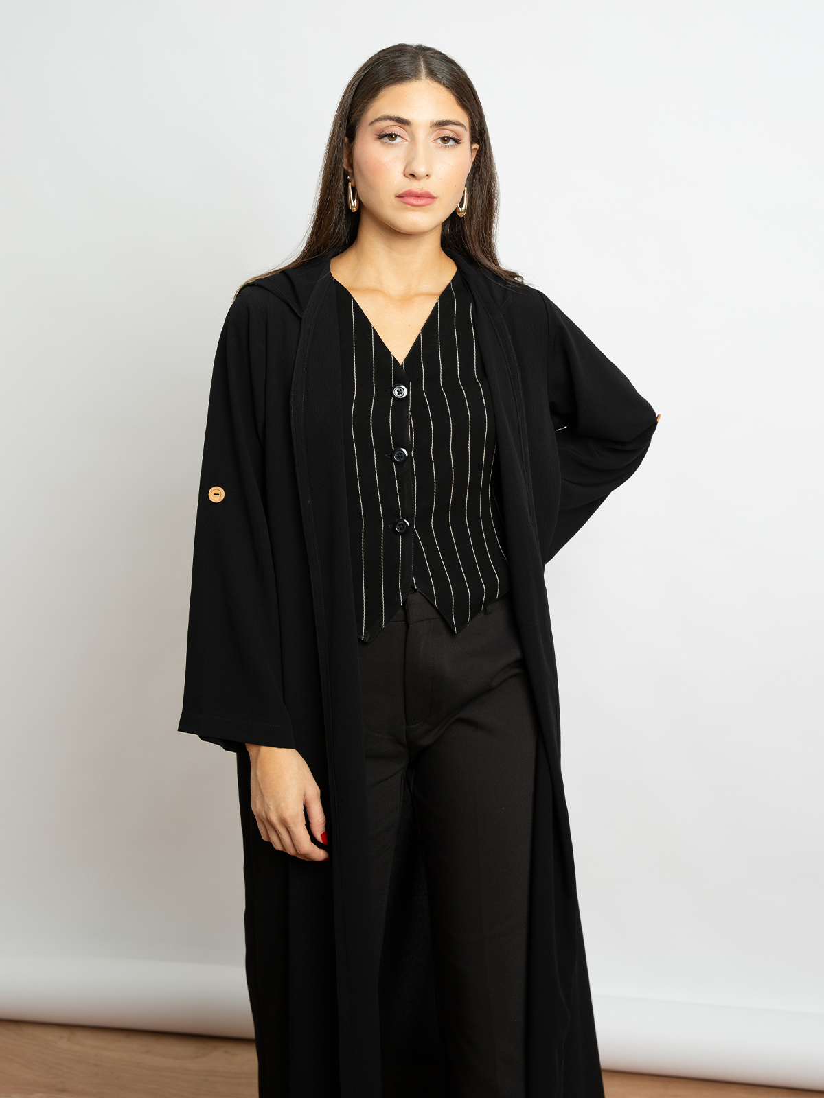 Striped Black - Vneck Under Abaya Vest