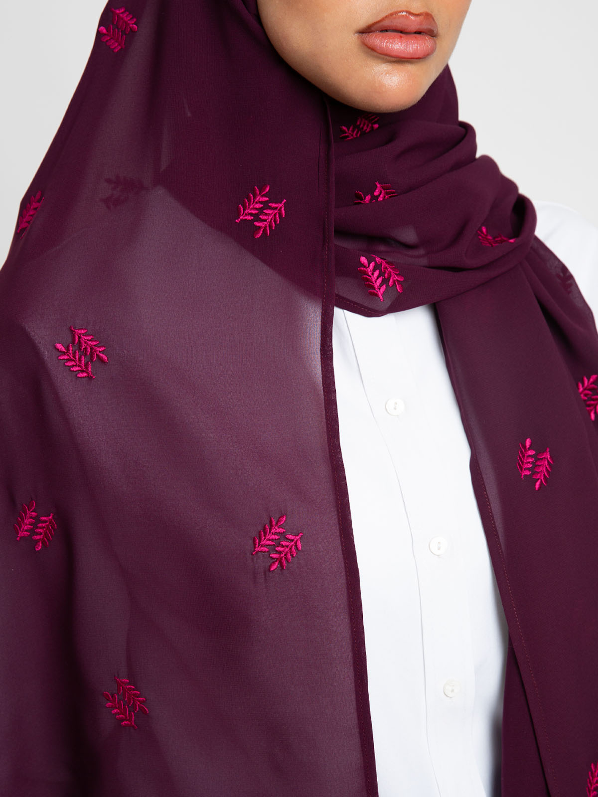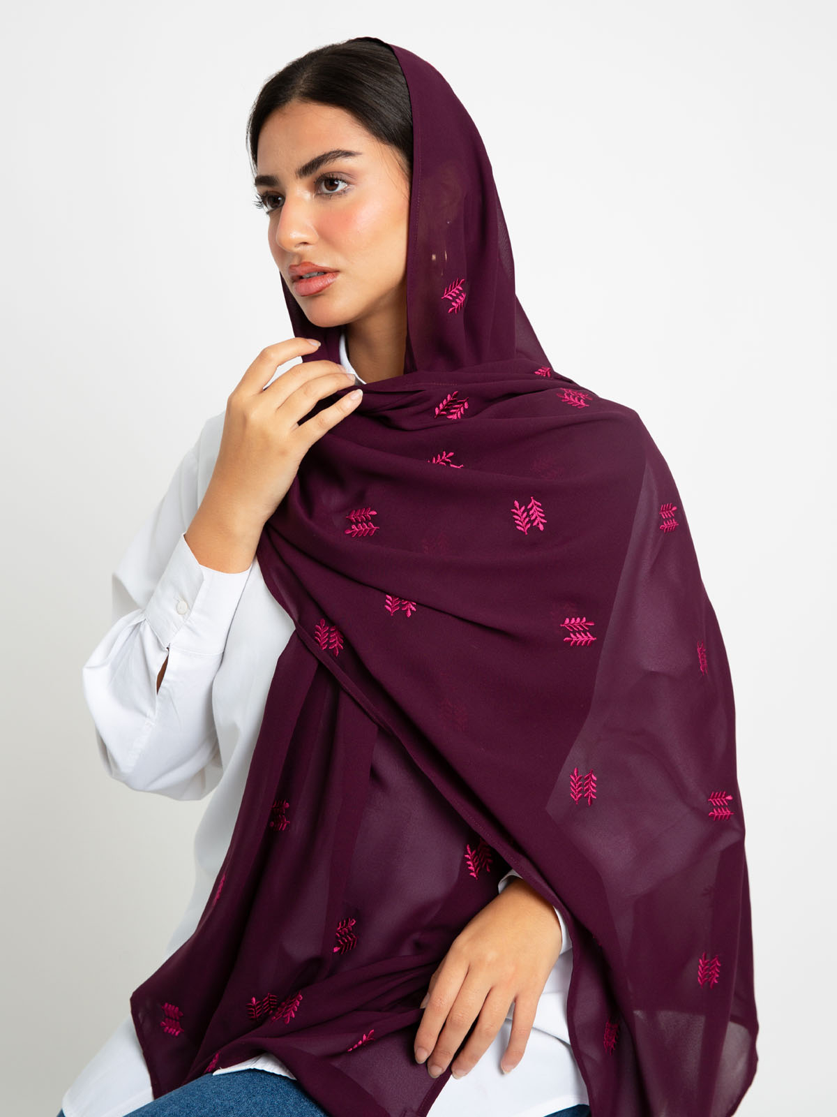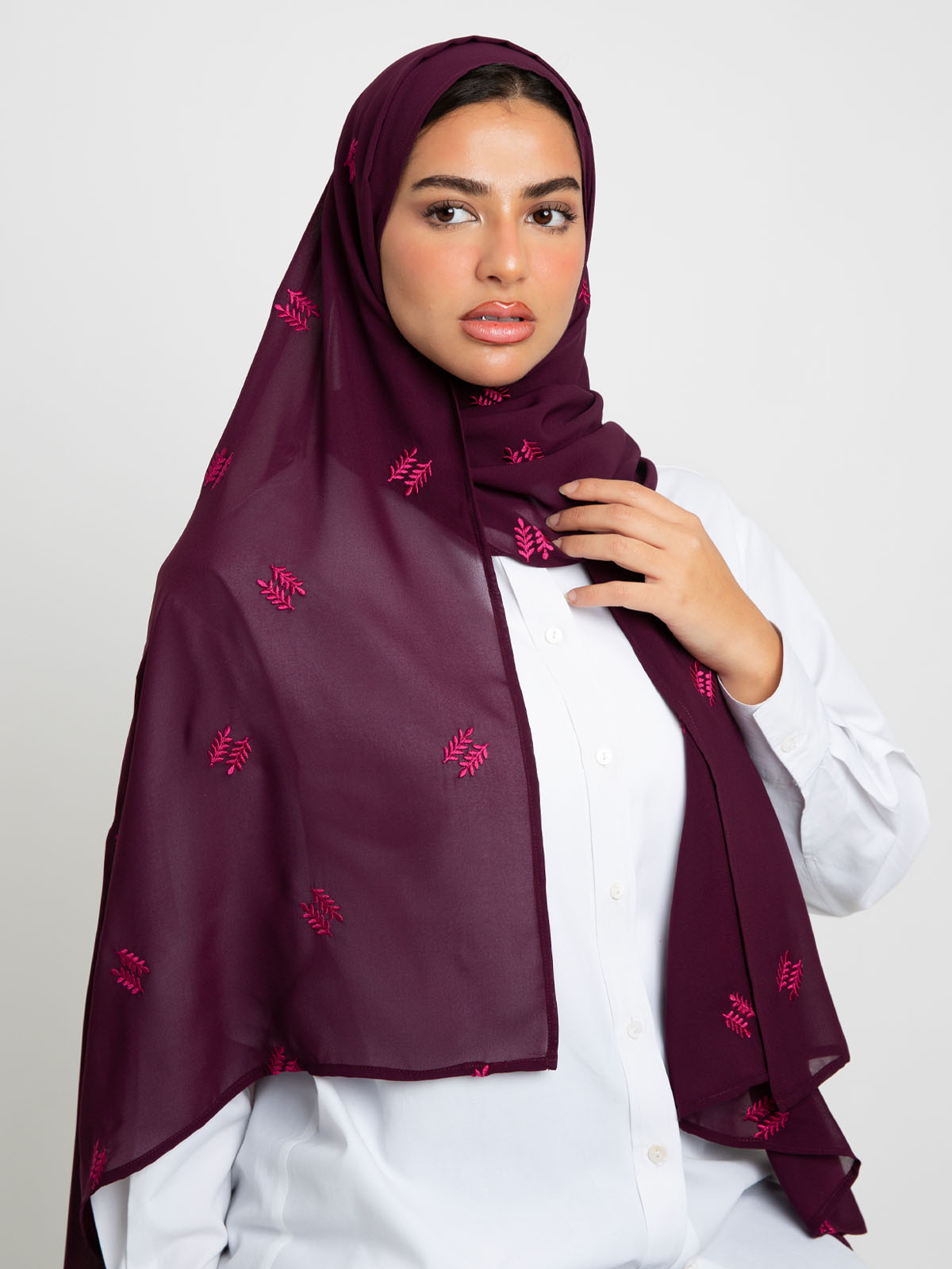 A timeless laser chiffon hijab designed for those who love minimal beauty with a hint of nature. Lightweight, flowy, and adorned with elegant spikes details. Your everyday essential for soft, refined style.