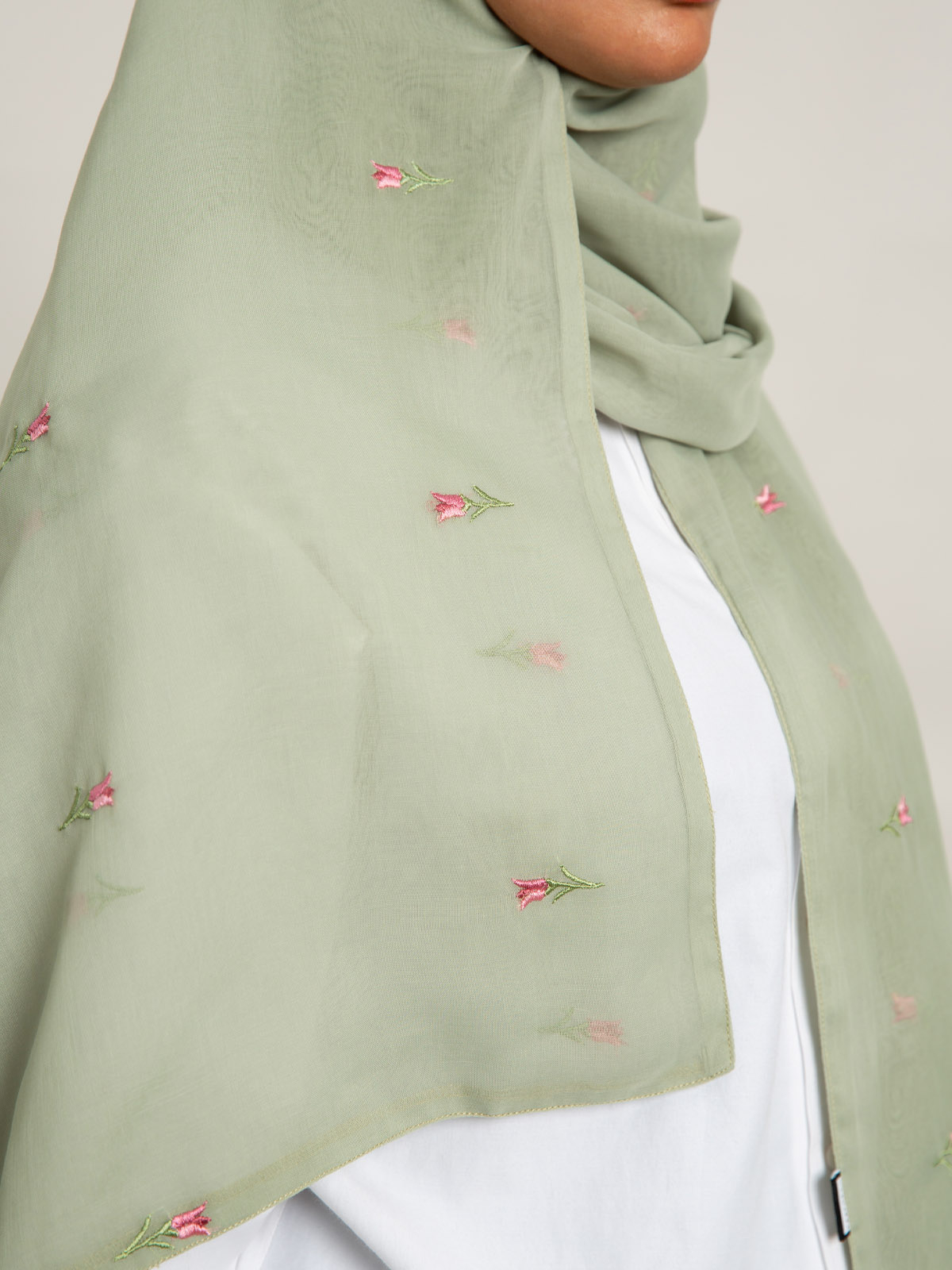 From the heart of our Nourishing 10 Collection comes a hijab that continues the story, a limited-edition double-layered, non-slip voile hijab, delicately embroidered with soft pastel flowers.