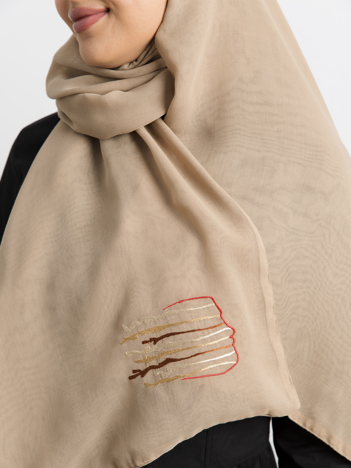 Najd - Beige Voile Tarha with Uloo Embroidery