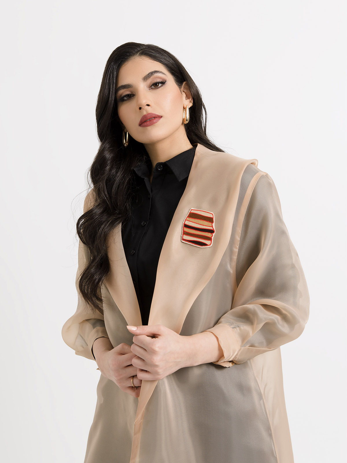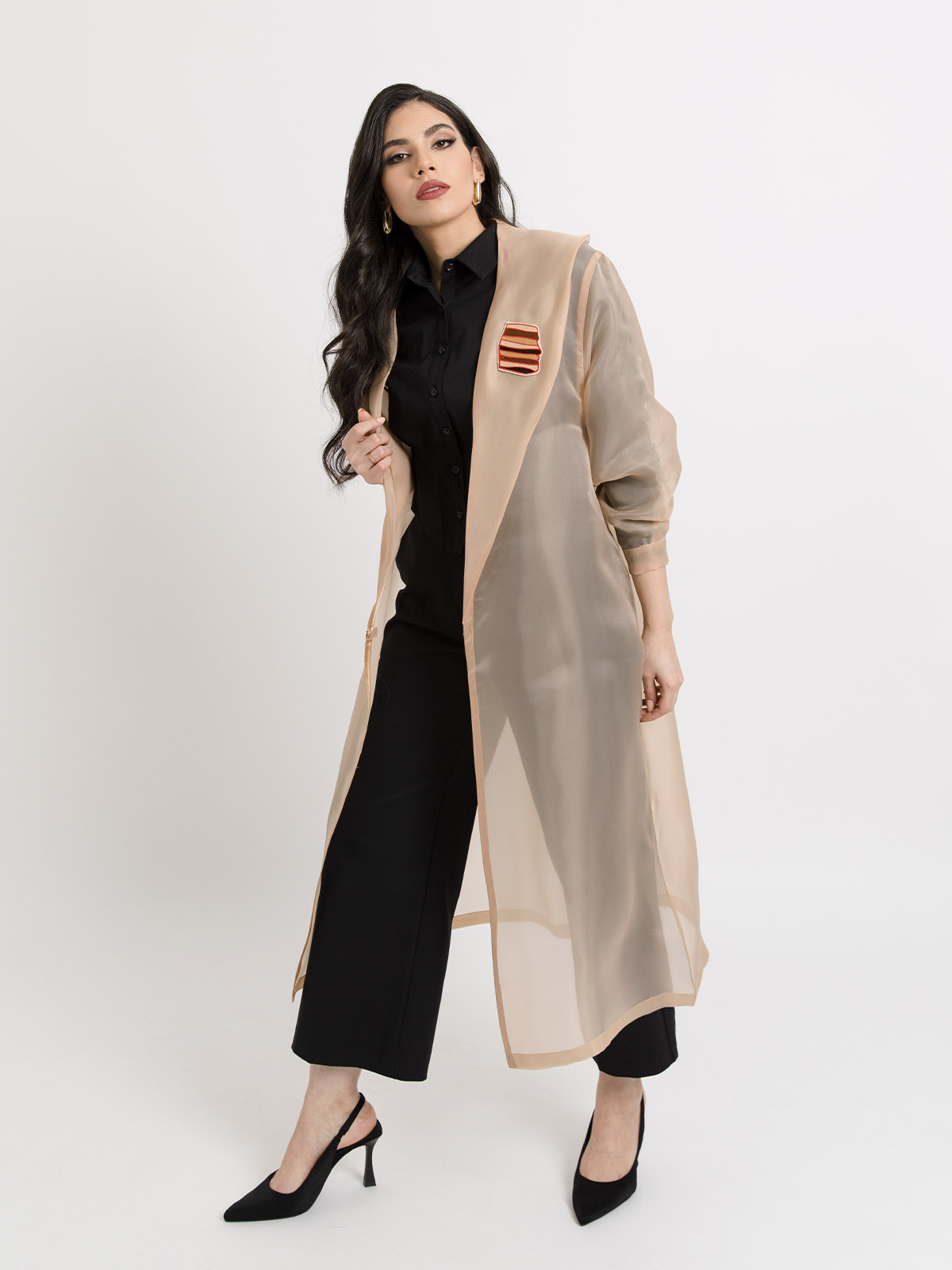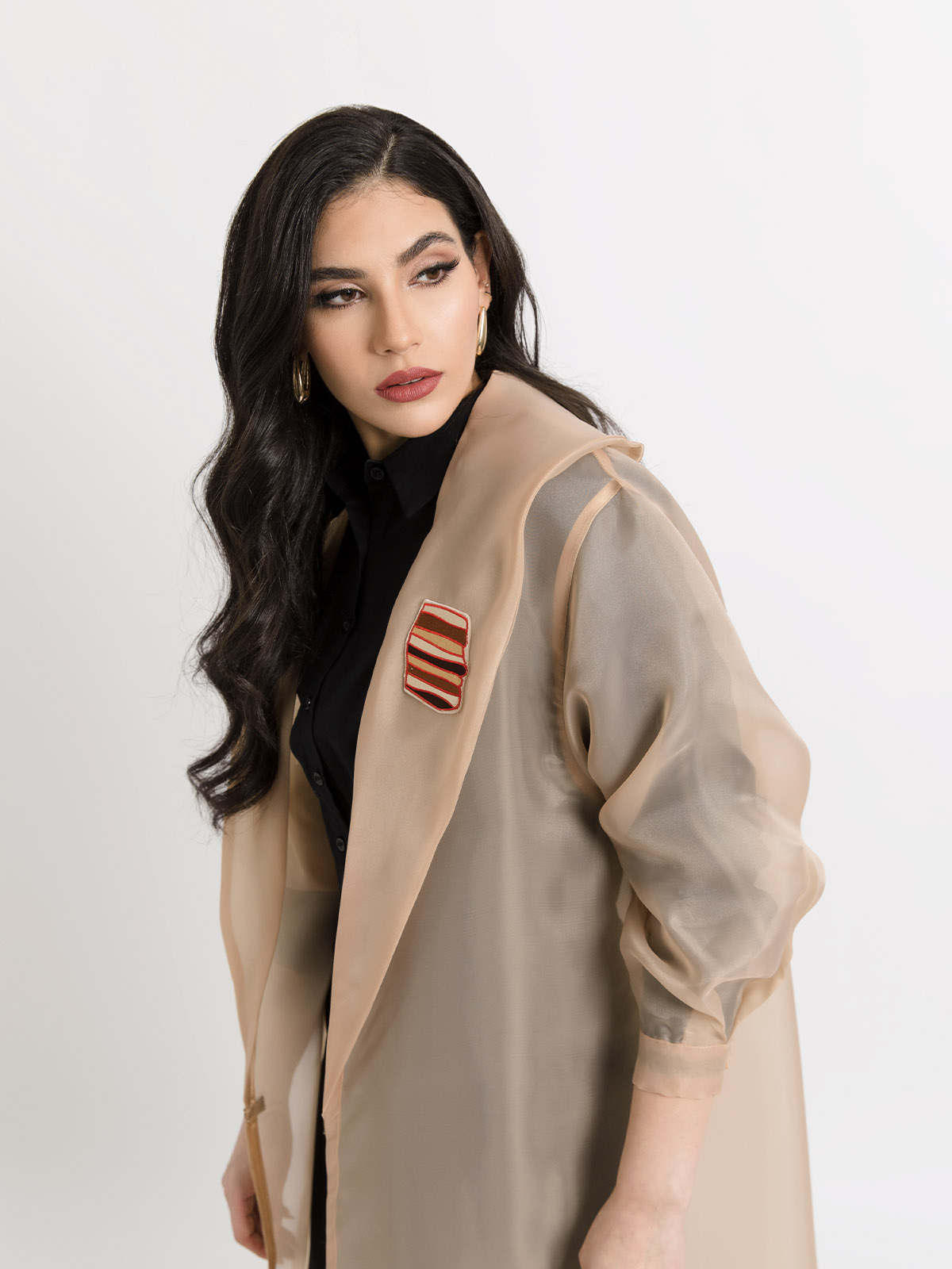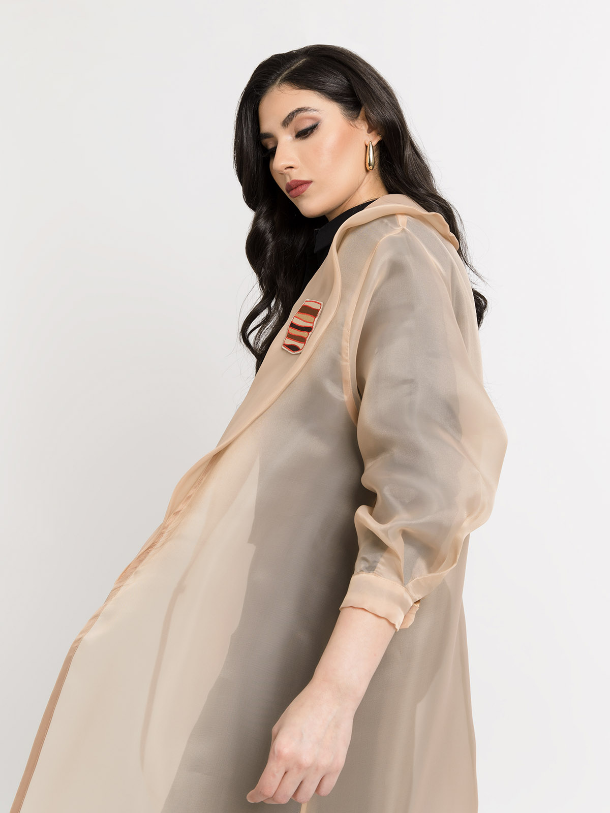 Roqee - Beige Sheer Coat with Uloo Embroidery