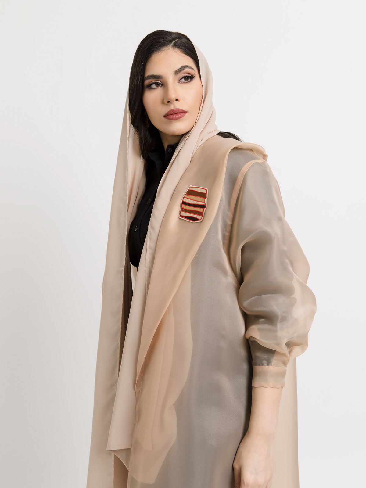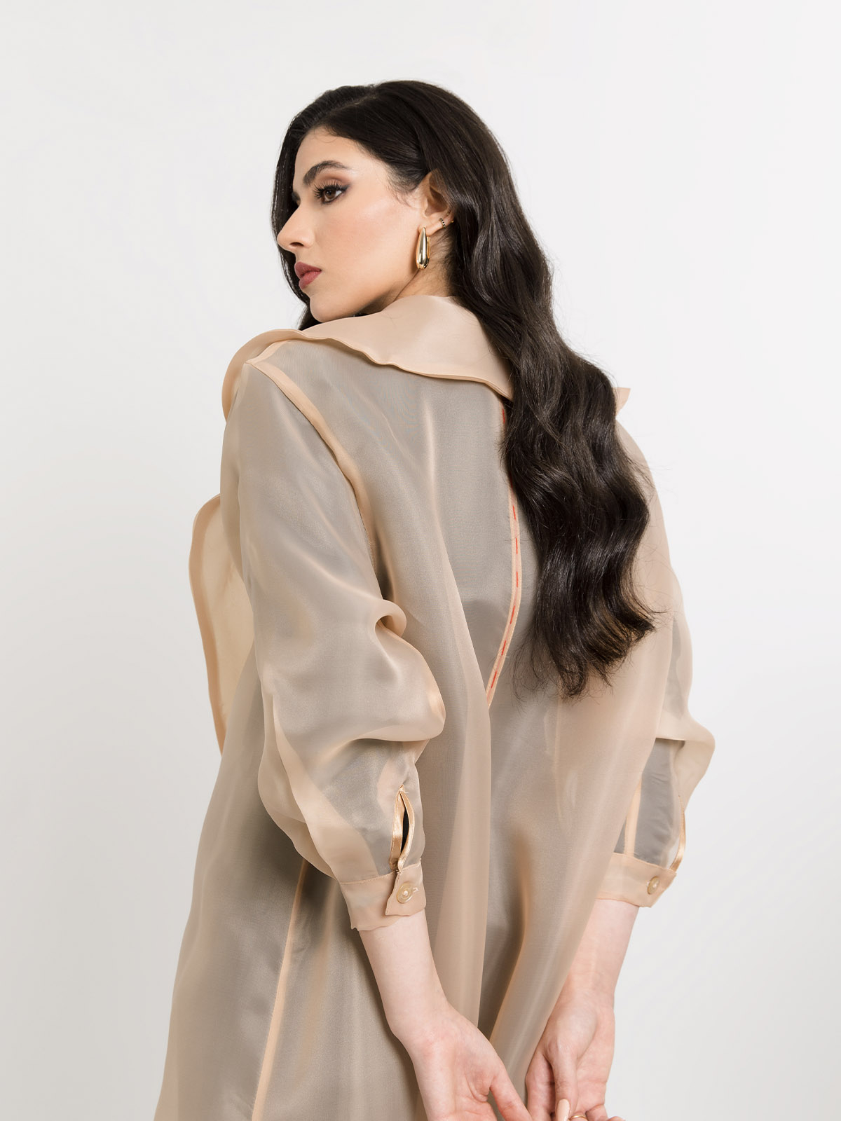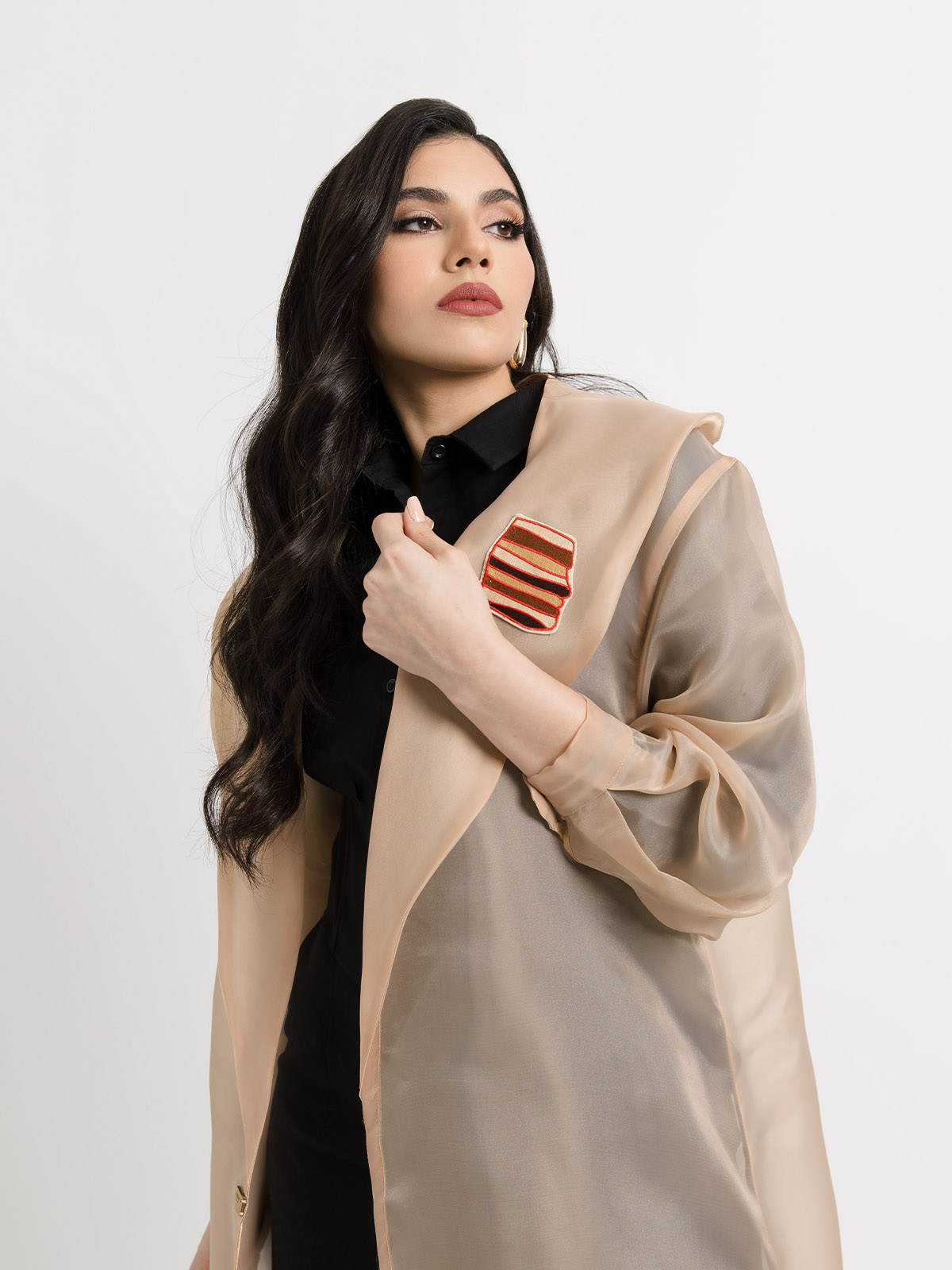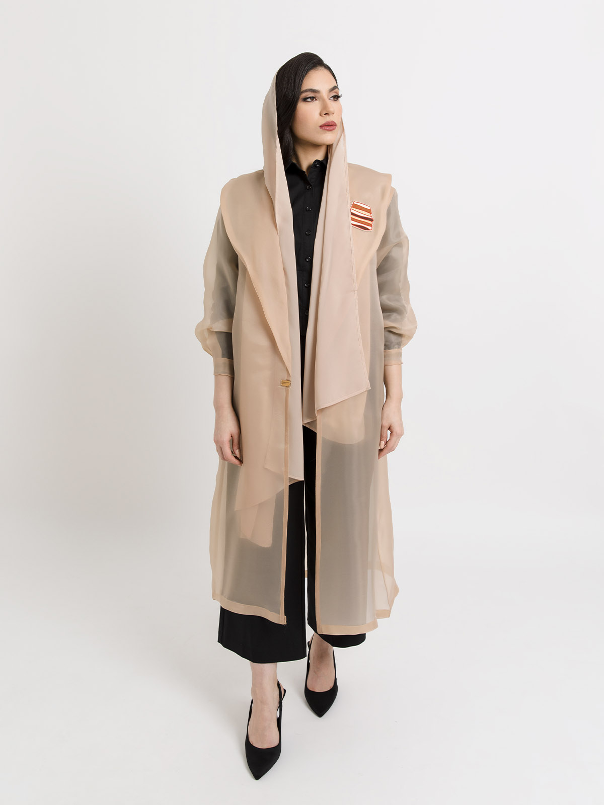 Roqee - Beige Sheer Coat with Uloo Embroidery