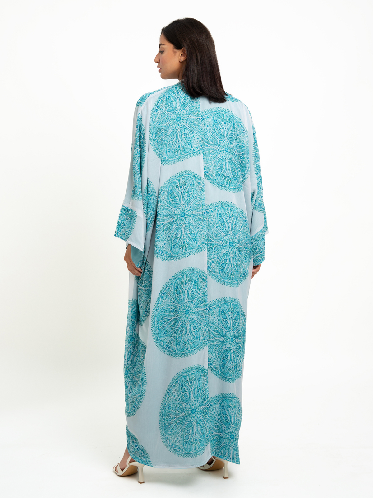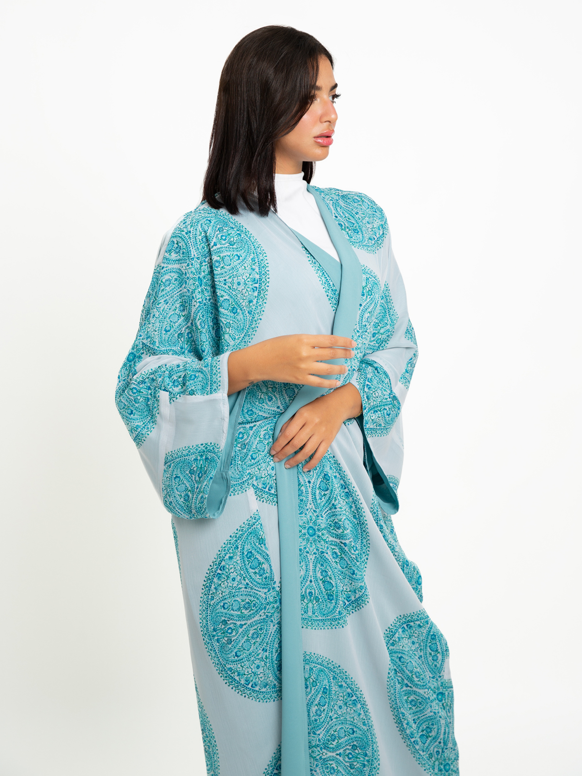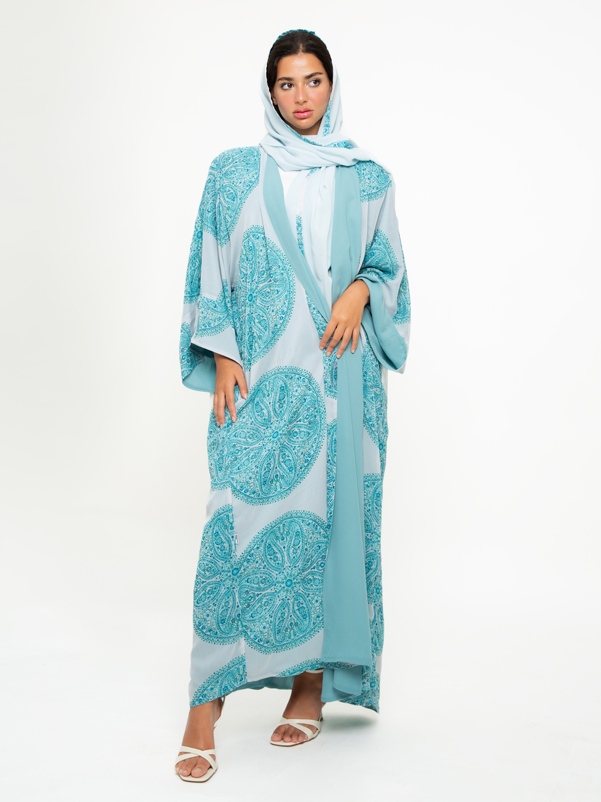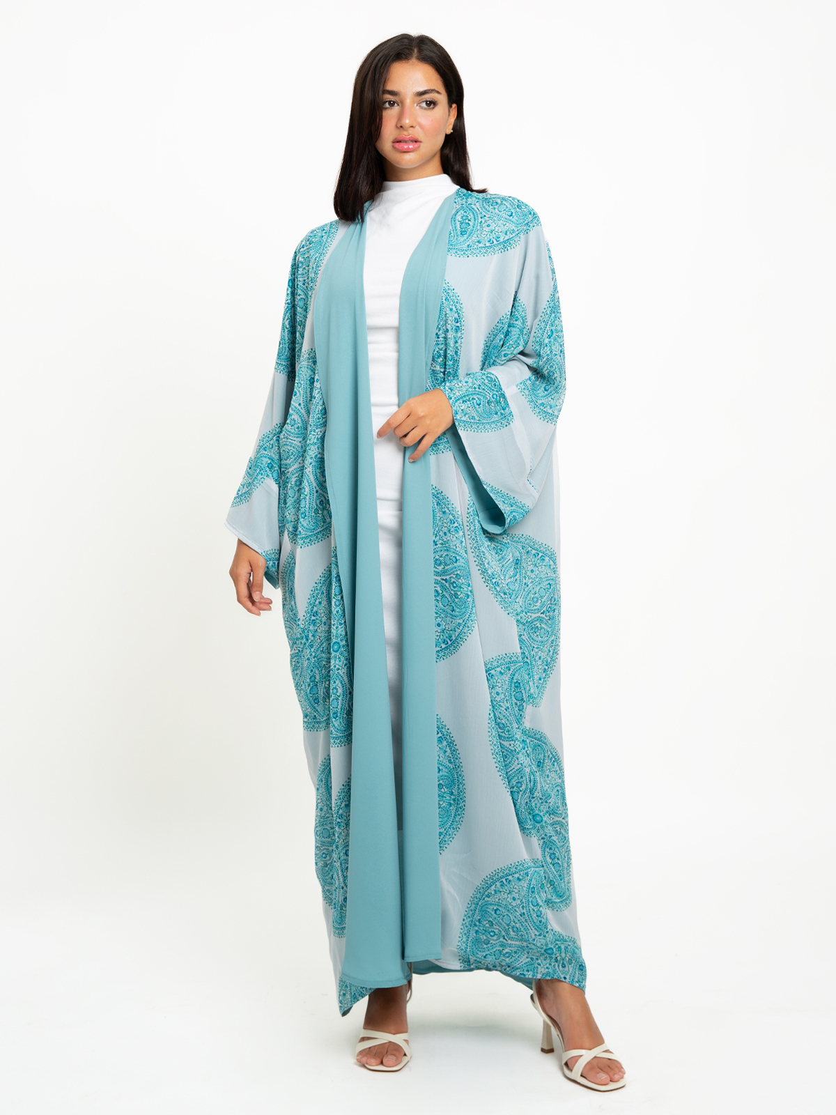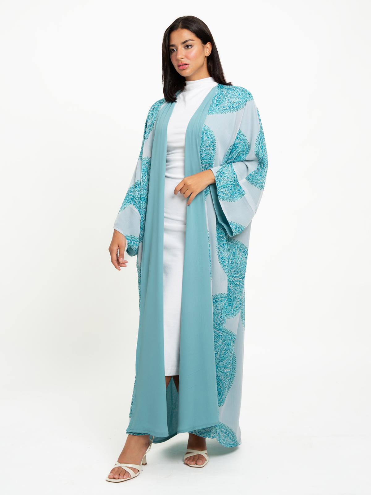 Double Face Wide-fit Long Open Abaya in Printed Chiffon Fabric
